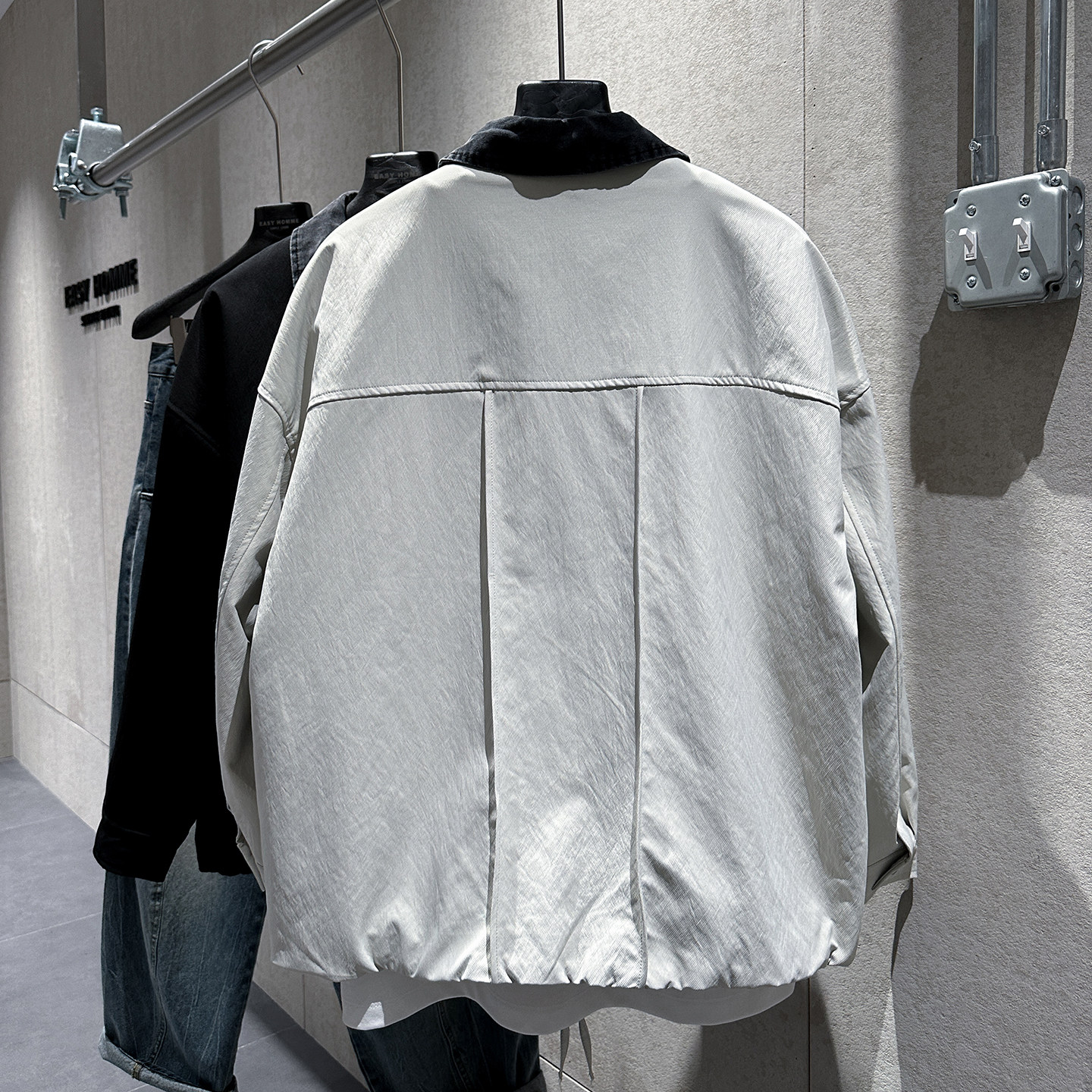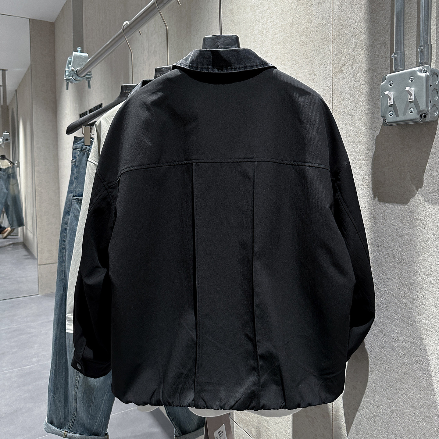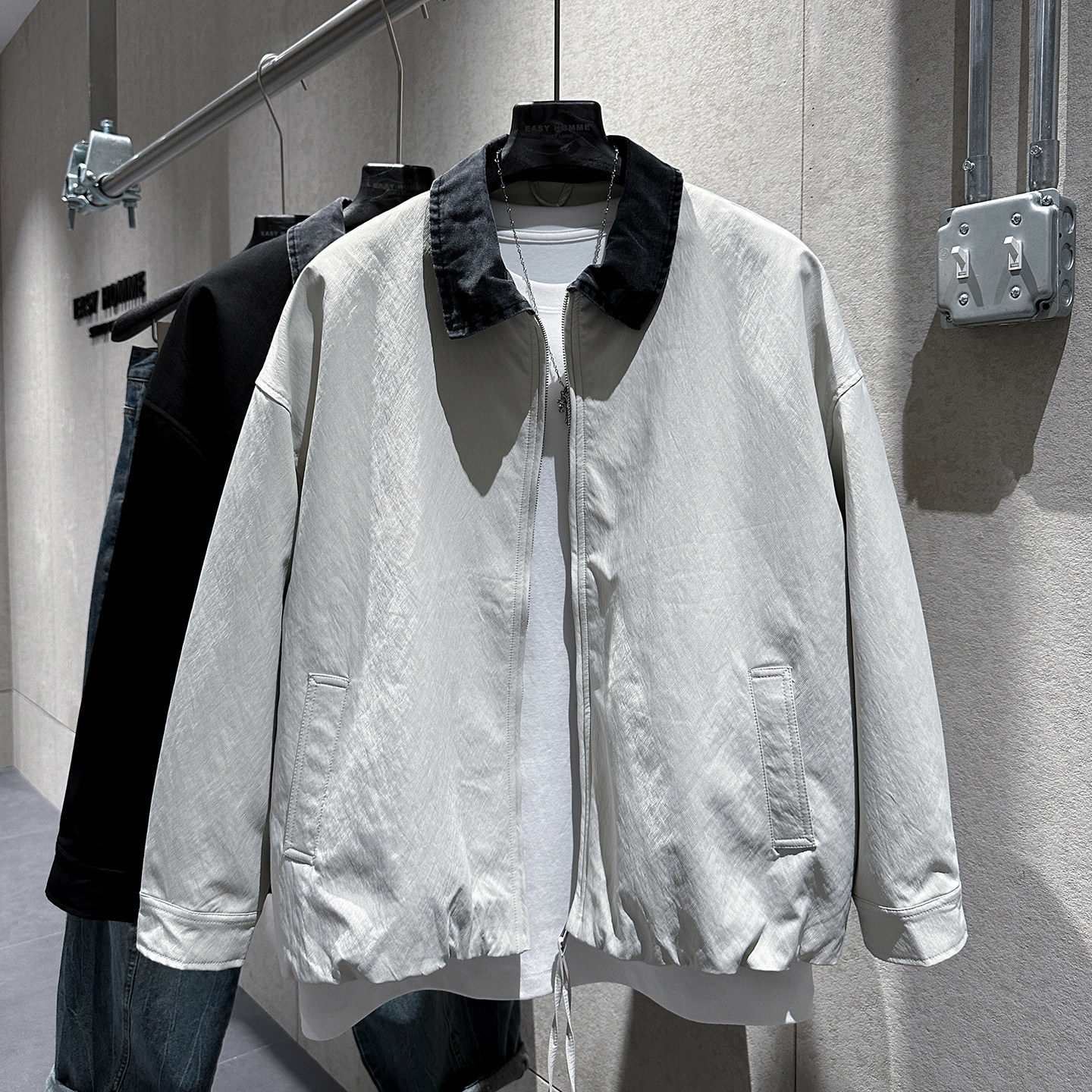 早春新款美式教练夹克衫男士个性牛仔布拼接翻领纯色潮流百搭外套 - EASY简单型男店