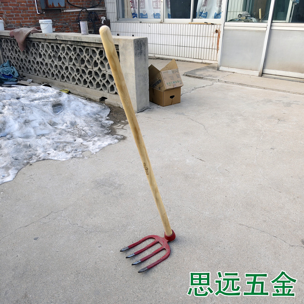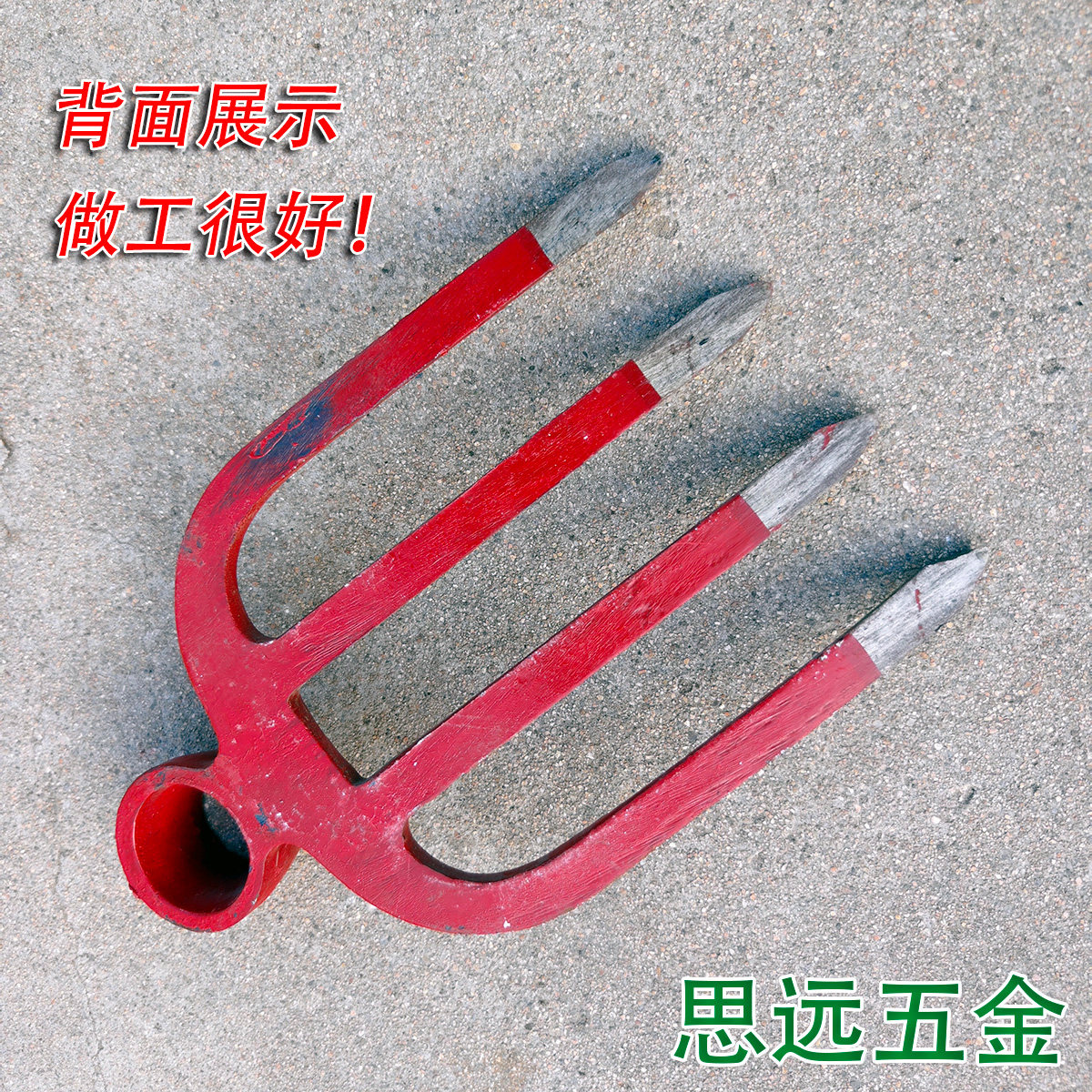 新款四齿叉锄道轨钢锄外贸翻地松土加粗叉齿一体红锄老款圆孔锄头 - 思远五金工具店