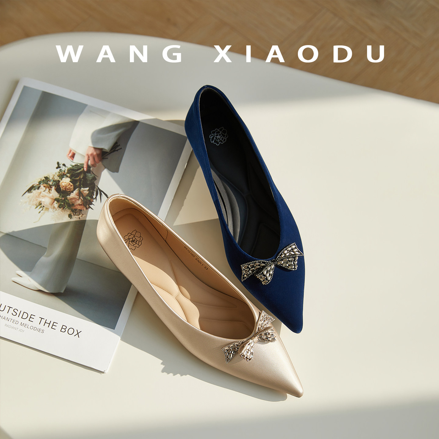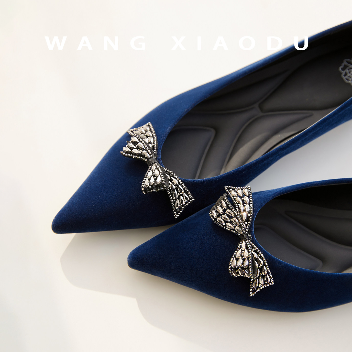 原创【王小毒】蝴蝶星语●亮钻尖头单鞋女丝绸绒面复古气质通勤鞋 - 王小毒的小店