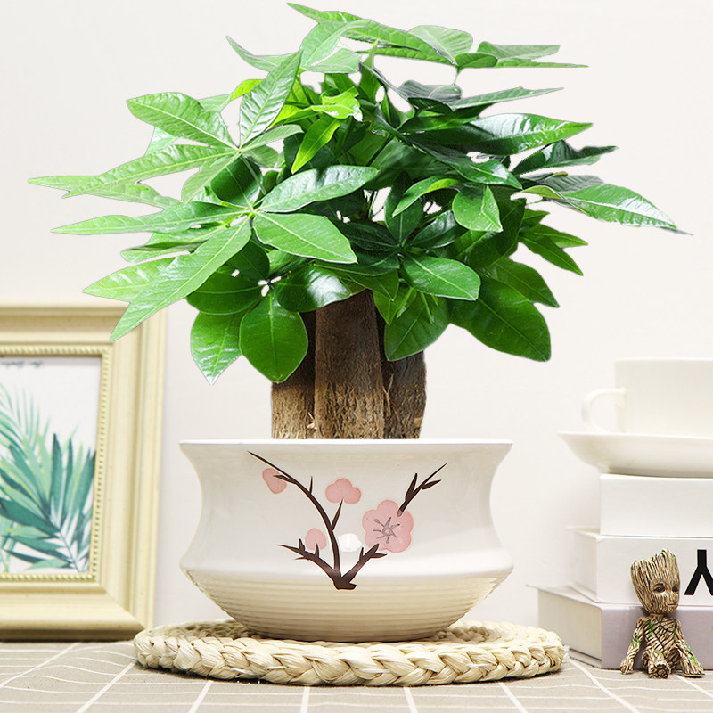 三杆发财树盆栽绿植花卉陶瓷好养活室内客厅四季常青净化空气耐旱 - 小冤家旗舰店