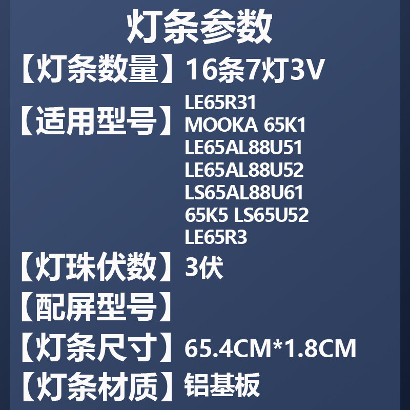 您的位置:光电产业平台  >  电器  >  适用海尔LS65A51G H65V6000 LE65D8810 LE65A5000背光LED灯条