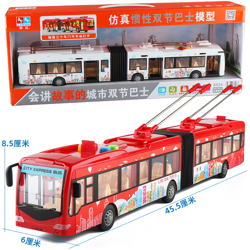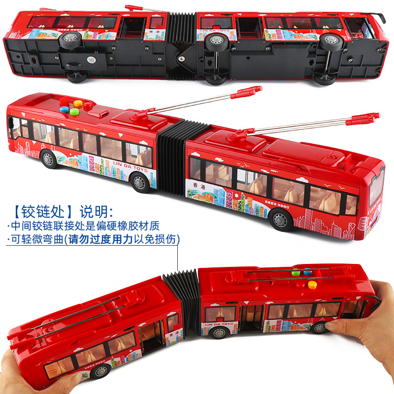 大号林达音乐开门弯曲加长双节公交车大巴士儿童公共汽车模型玩具 - 良龙旗舰店