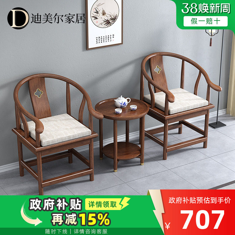 新中式实木圈椅胡桃木太师椅单人椅客厅官帽椅主人椅围椅家用椅子 - 迪美尔旗舰店