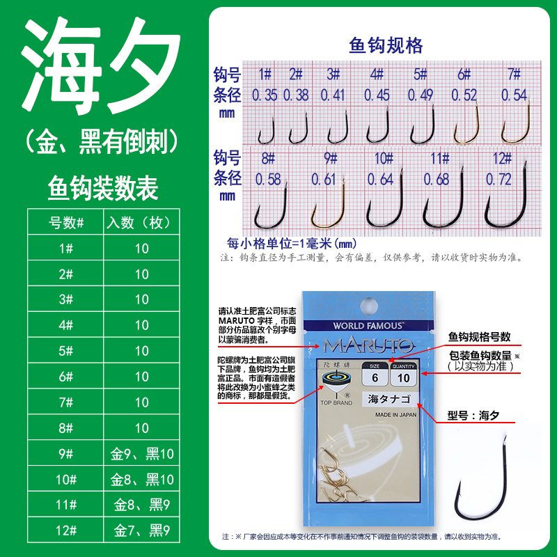 金海夕有倒刺鱼钩包邮日本土肥富钓鱼渔钩正品陀螺筏钓钩垂钓水库 - 同富渔具