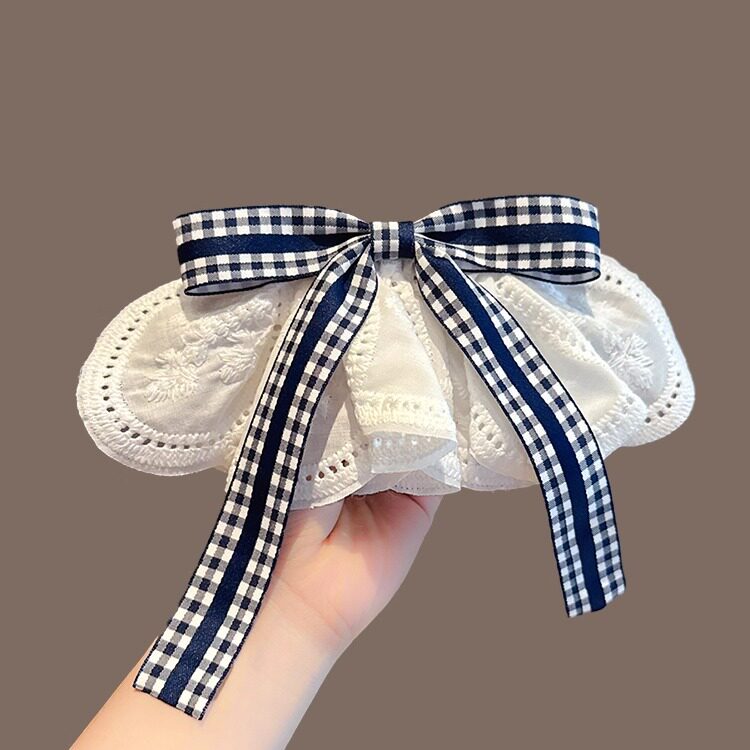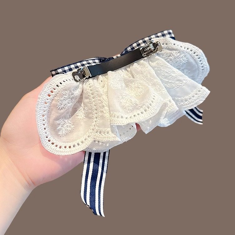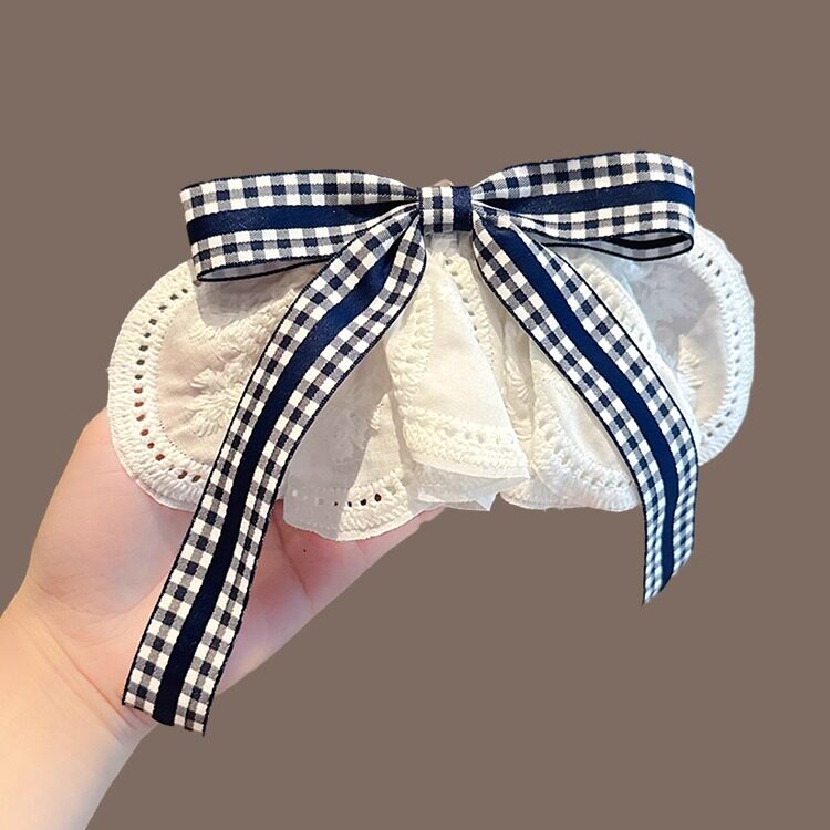韩系文艺格子蝴蝶结蕾丝裙摆发夹女高级感温柔夹子头饰后脑勺发卡 - 璀璨艺阁