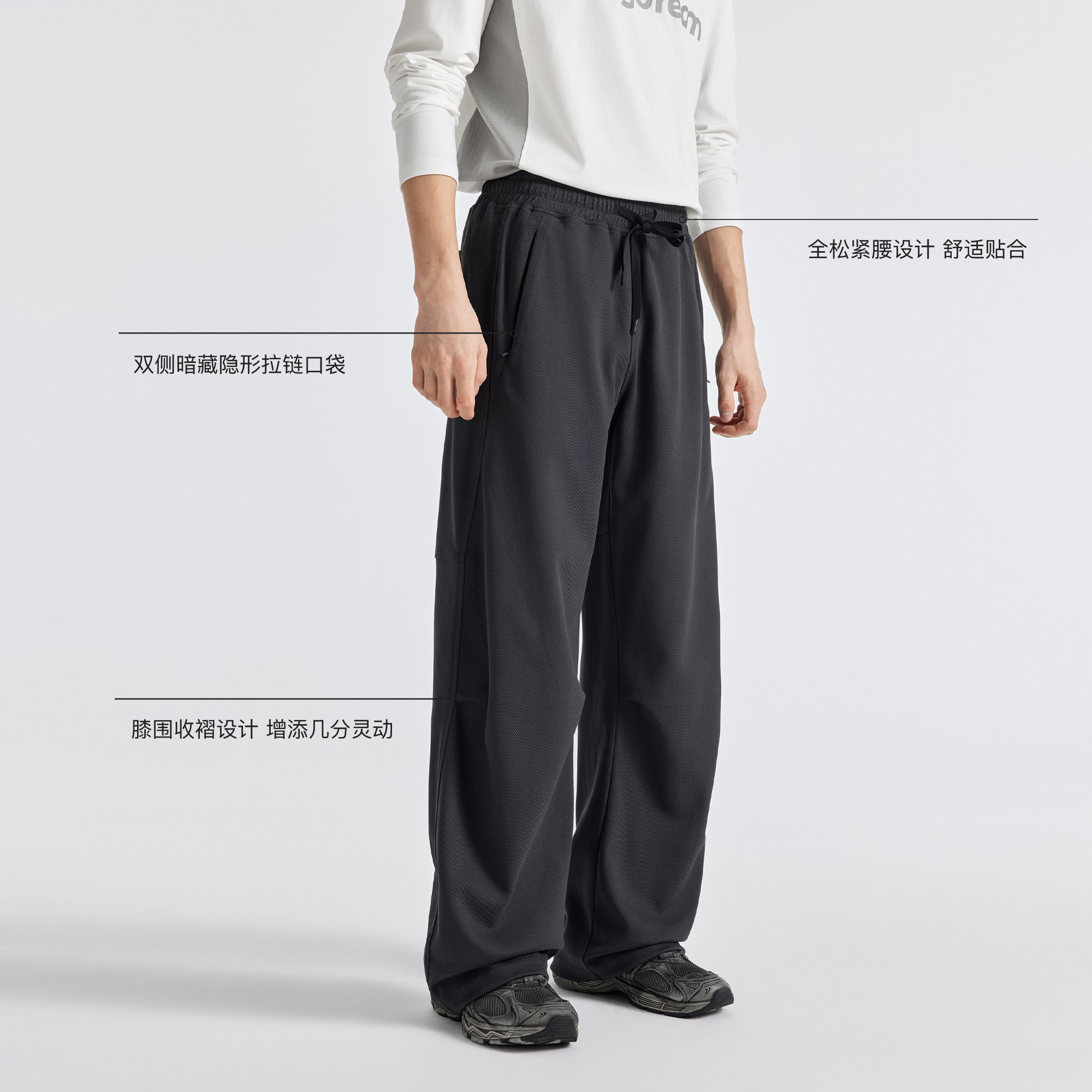 BODYDREAM时髦破晓灰卫裤男26新品膝围收褶运动休闲直筒/束脚裤 - bodydream旗舰店