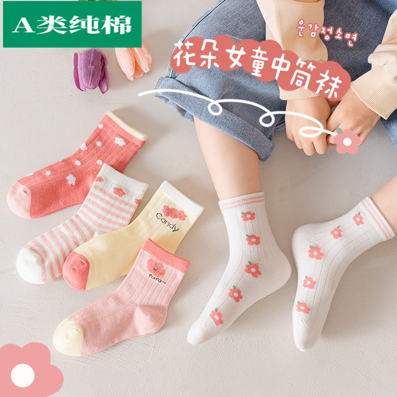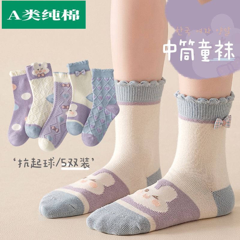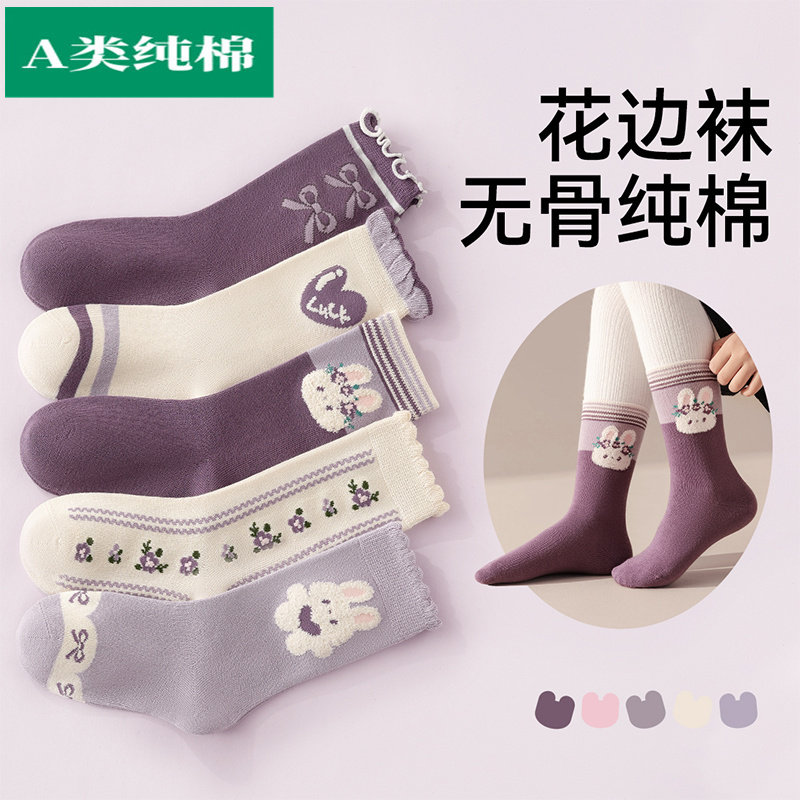 全棉母婴纯棉女童袜子纯棉春秋款儿童中筒袜女孩长筒宝宝棉袜a类 - Purcottoon全棉母婴时代