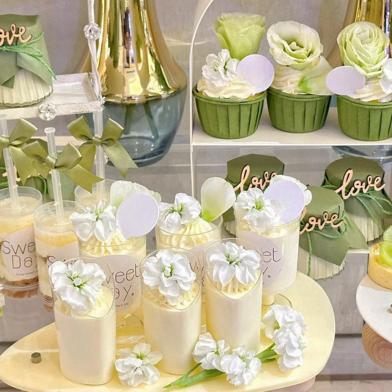 森系生日甜品台装饰婚礼烘焙推推乐蛋糕筒绿色纸杯蛋糕杯子布丁纸 - 亲亲熊派对 YUN
