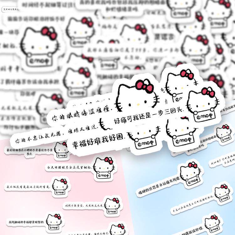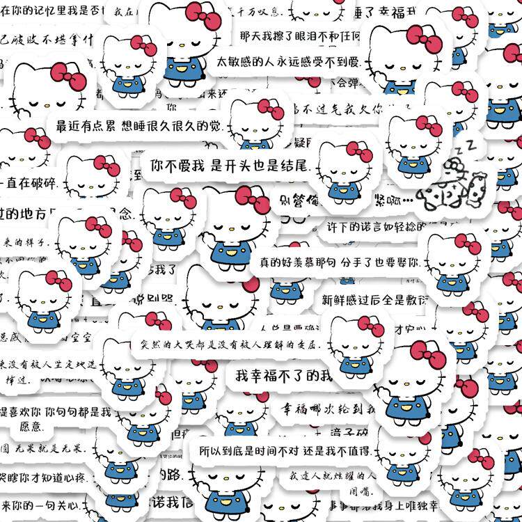 100张卡通可爱kitty文字背景图贴纸小众ins爆款凯蒂猫少女心贴画 - 卷卷文化