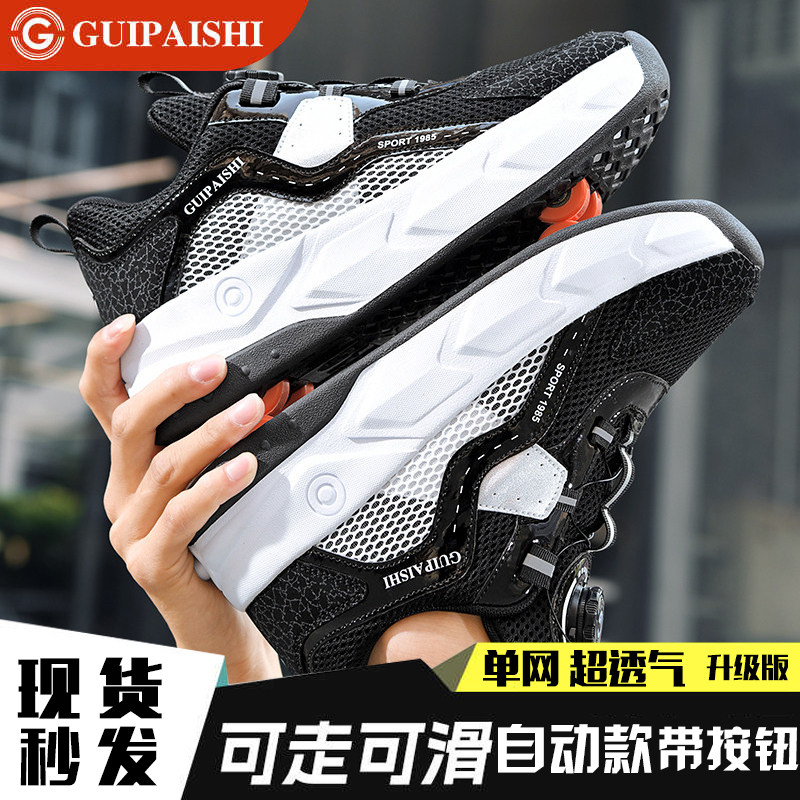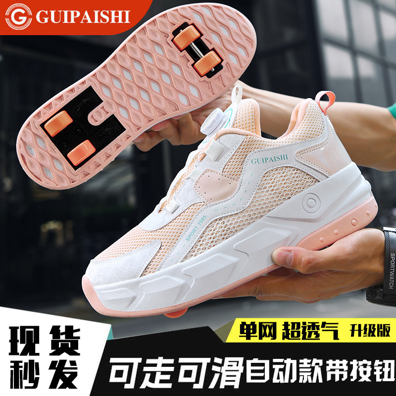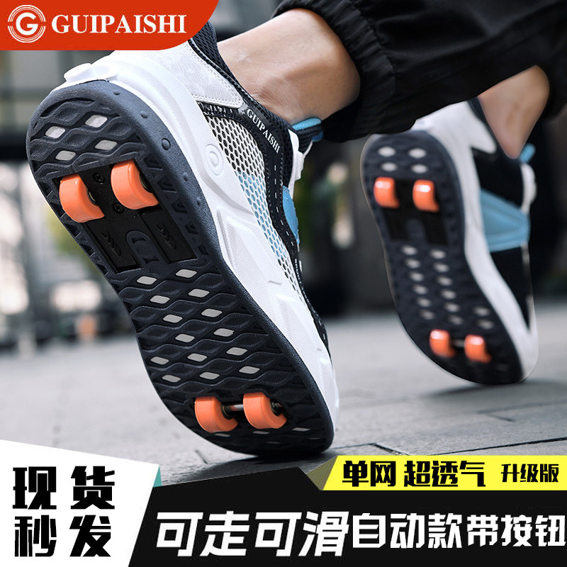暴走鞋男童自动四轮儿童飞行鞋学生可收缩女童轮滑鞋可走路运动鞋 - 艾舒仕运动户外专营店