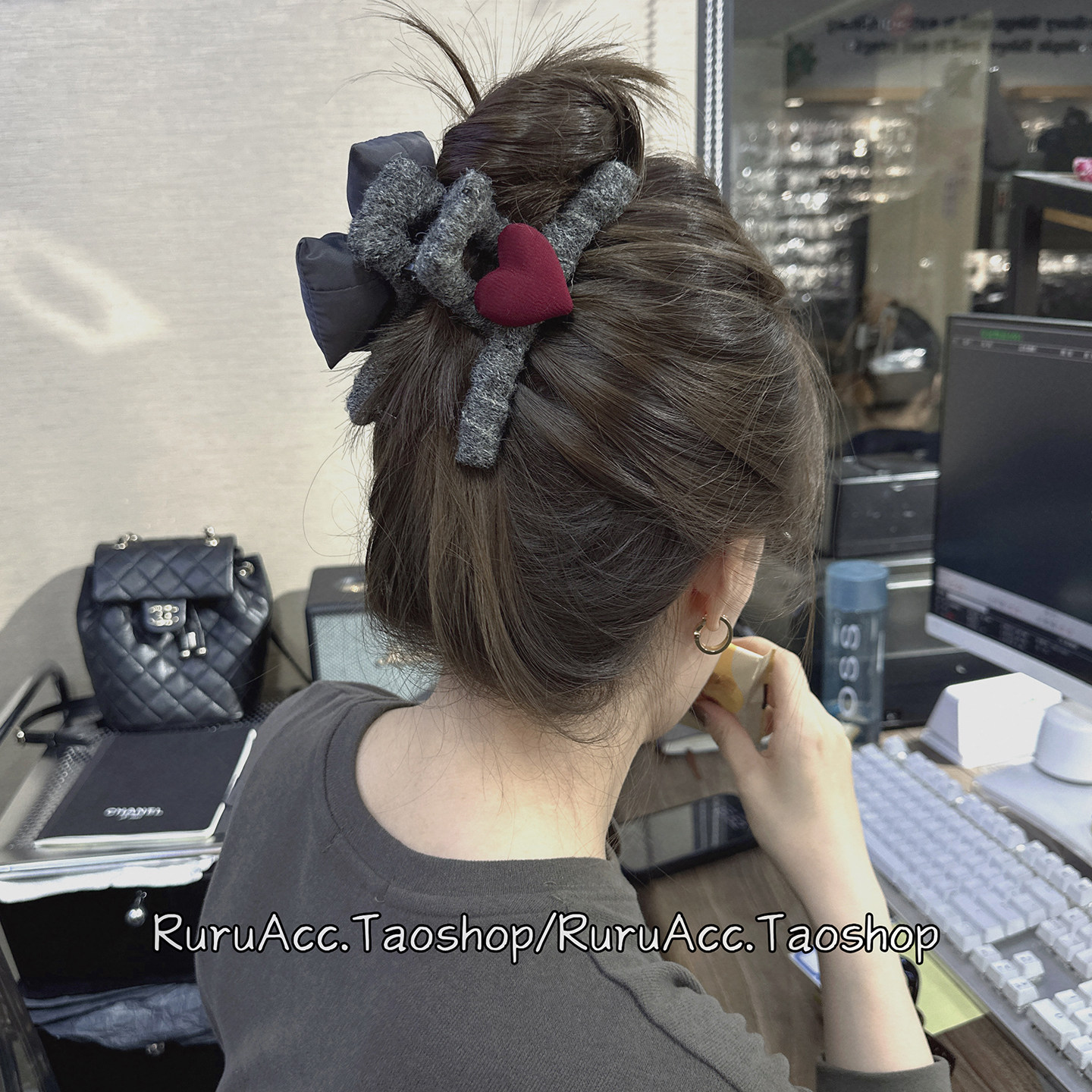 高级小众AB版红色爱心灰色蝴蝶结抓夹后脑勺盘发夹韩国网红鲨鱼夹 - RURU韩国饰品店