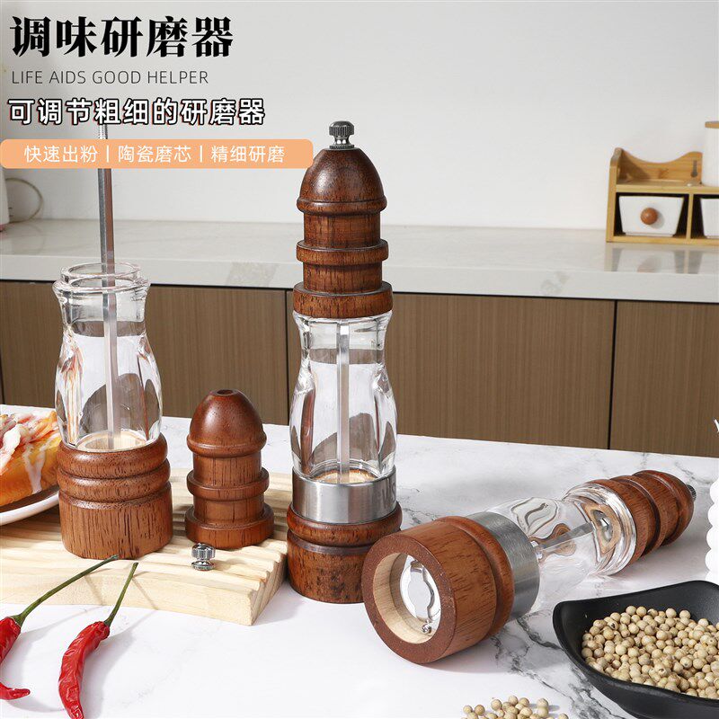 现磨胡椒研磨器家用手动碎海盐花椒胡椒粉研磨器实木灯塔胡椒磨 - tb5693213511的小店42