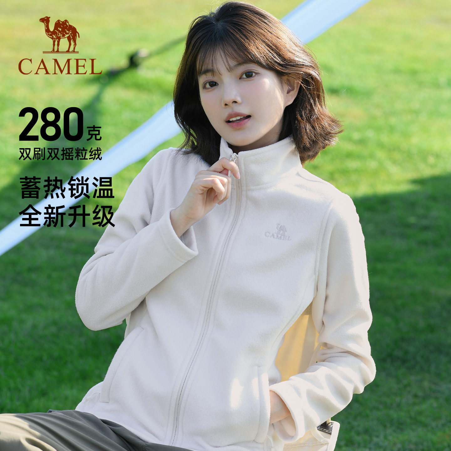骆驼户外抓绒衣男春季摇粒绒双面绒冲锋衣内胆上衣立领防风外套女 - 骆驼官方旗舰店