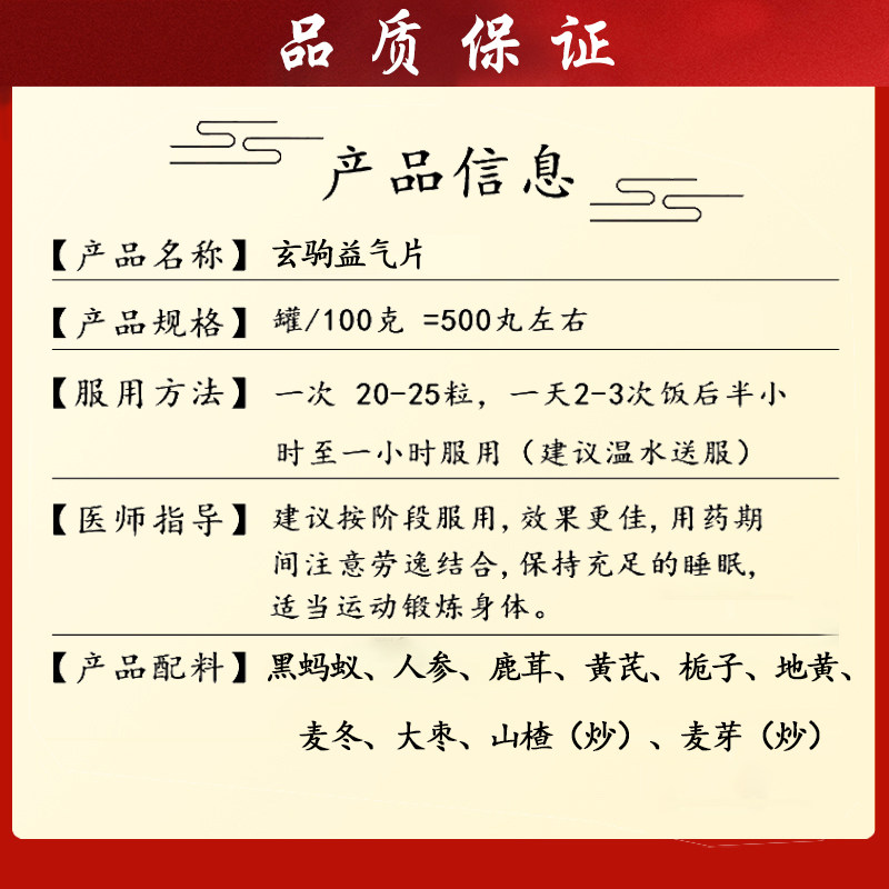 玄驹益气片黑蚂蚁、人参鹿茸等中草药材真材实料品质保证传统配方 - 精选药膳滋补堂