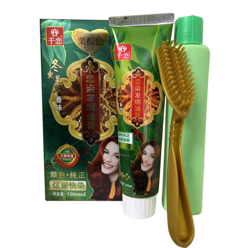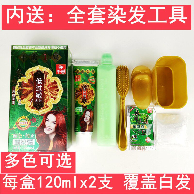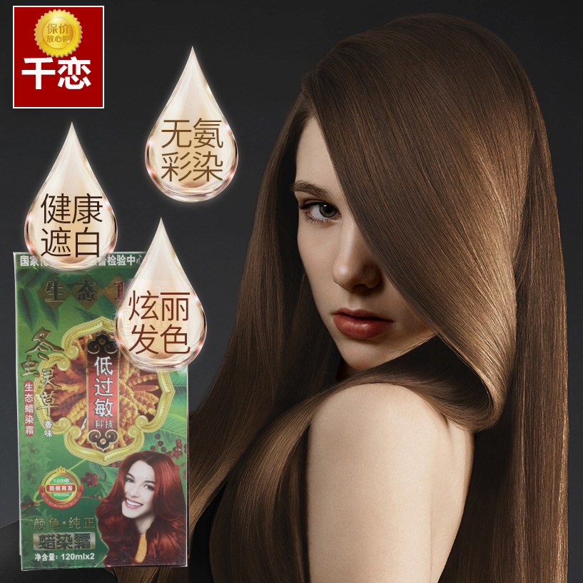 千恋生态1号蜡染霜天然纯无刺激低过敏染头发膏清水黑发冬虫灵草 - 妆美一生美容美发用品
