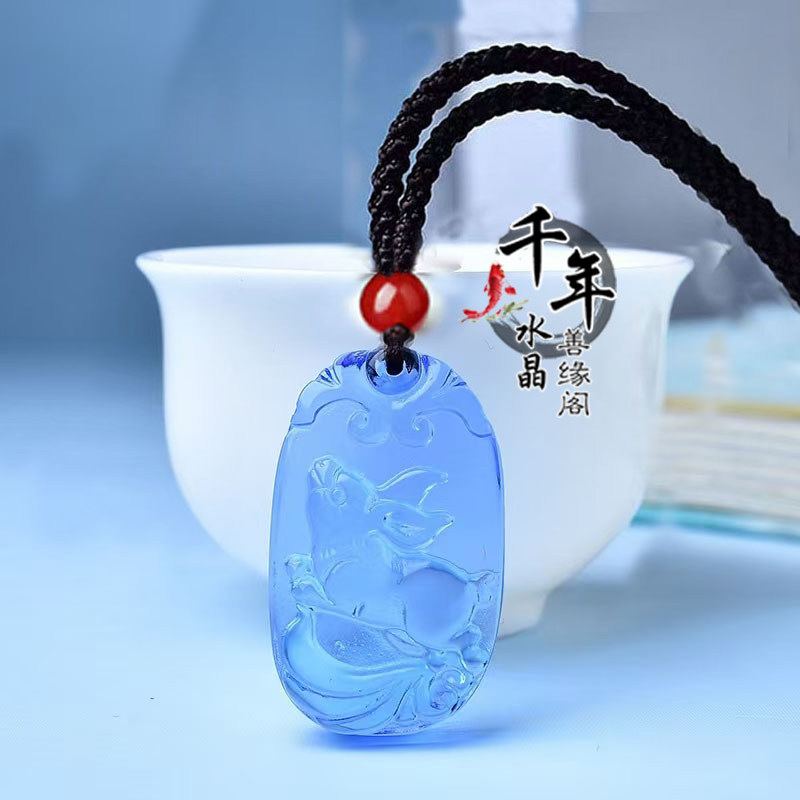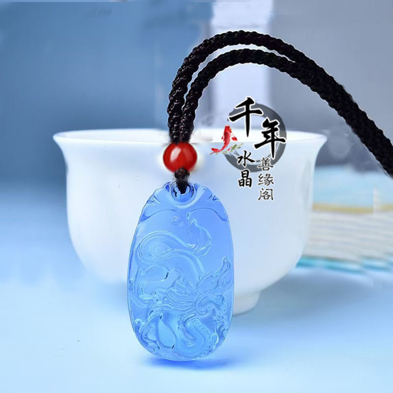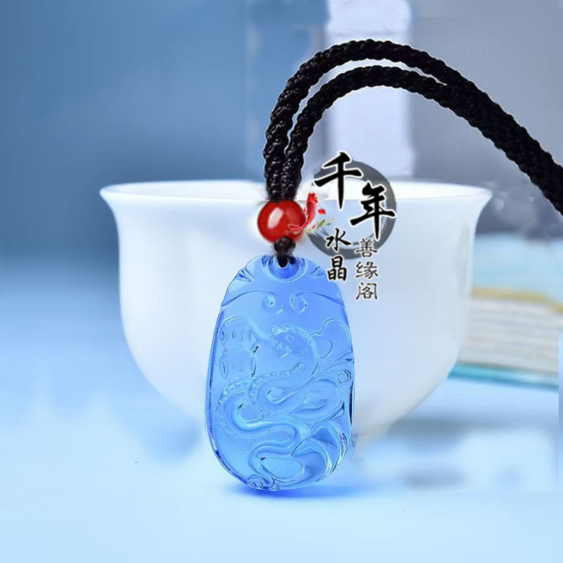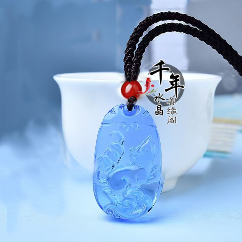 蓝水晶十二生肖鼠牛虎兔龙蛇马羊猴鸡狗猪招财吊坠蓝晶石钥匙扣 - 千年水晶 善缘阁