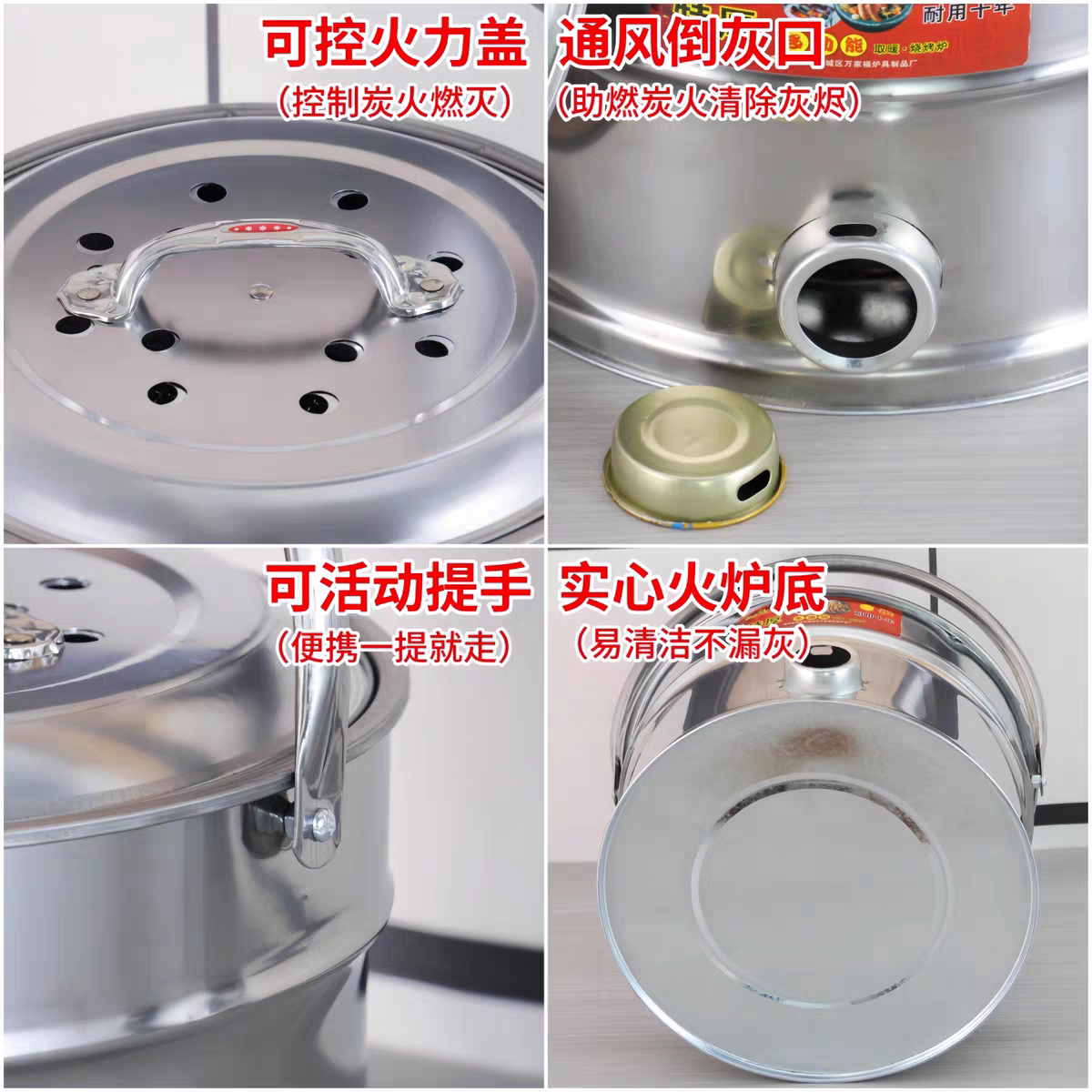 您的位置:光电产业平台  >  安防  >  烤火盆家用不锈钢取暖炉加厚木炭炉烤火炉户外便携式炭火盆烧烤炉
