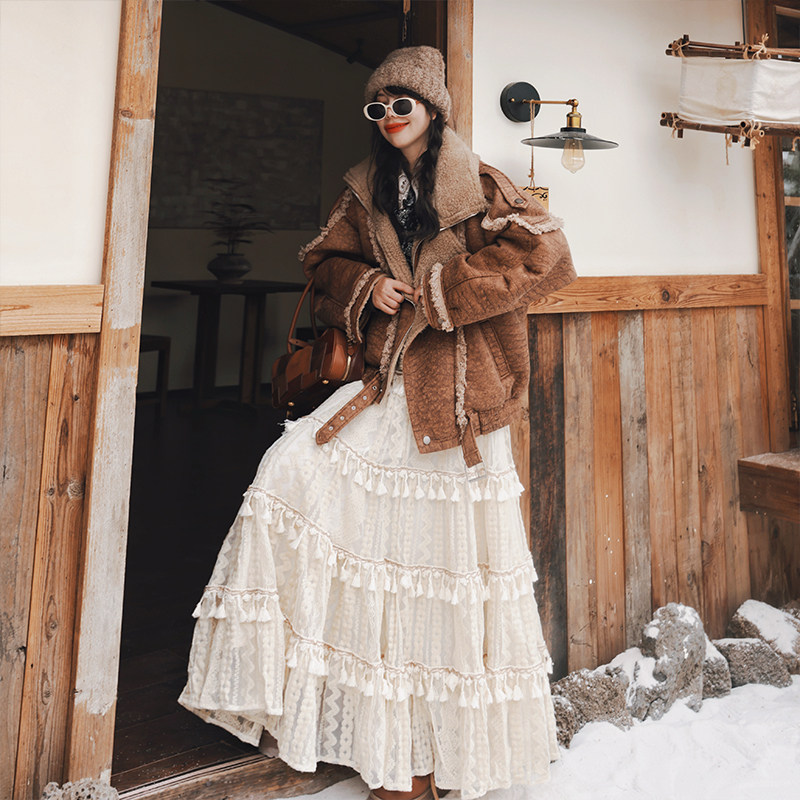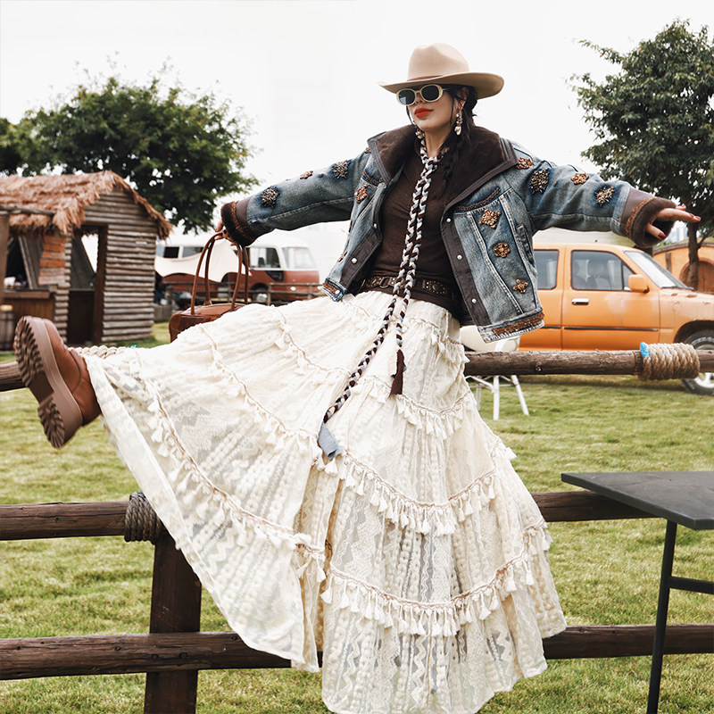 麦叙原创《浮云漫舒》波嬉风重工立体绣花蕾丝半身裙a字大摆长裙 - 麦叙女装 原创设计师品牌