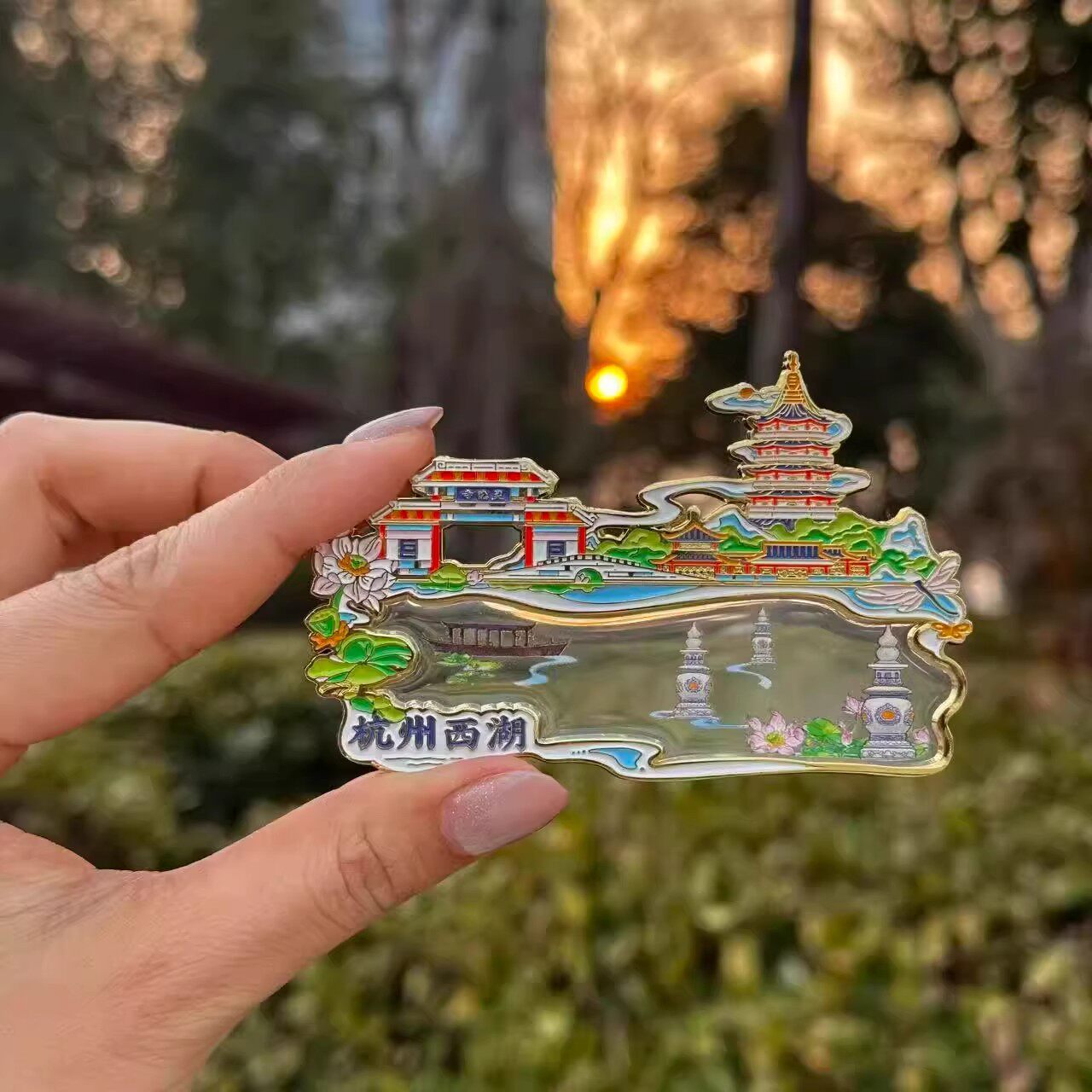 杭州文创西湖印象三潭印月灵隐寺雷峰塔金属冰箱贴旅游纪念伴手礼 - 好好吃饭文创精品店