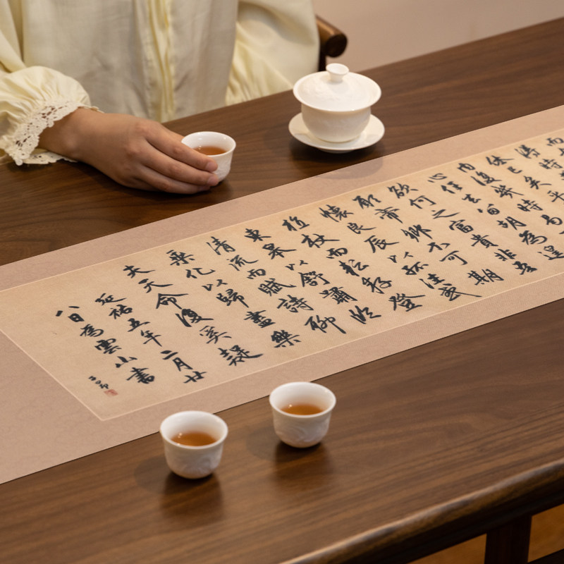 爱奇葩 归去来兮辞桌旗茶几桌布书法禅意茶席茶旗长布条茶台垫布 - 爱奇葩原创印品
