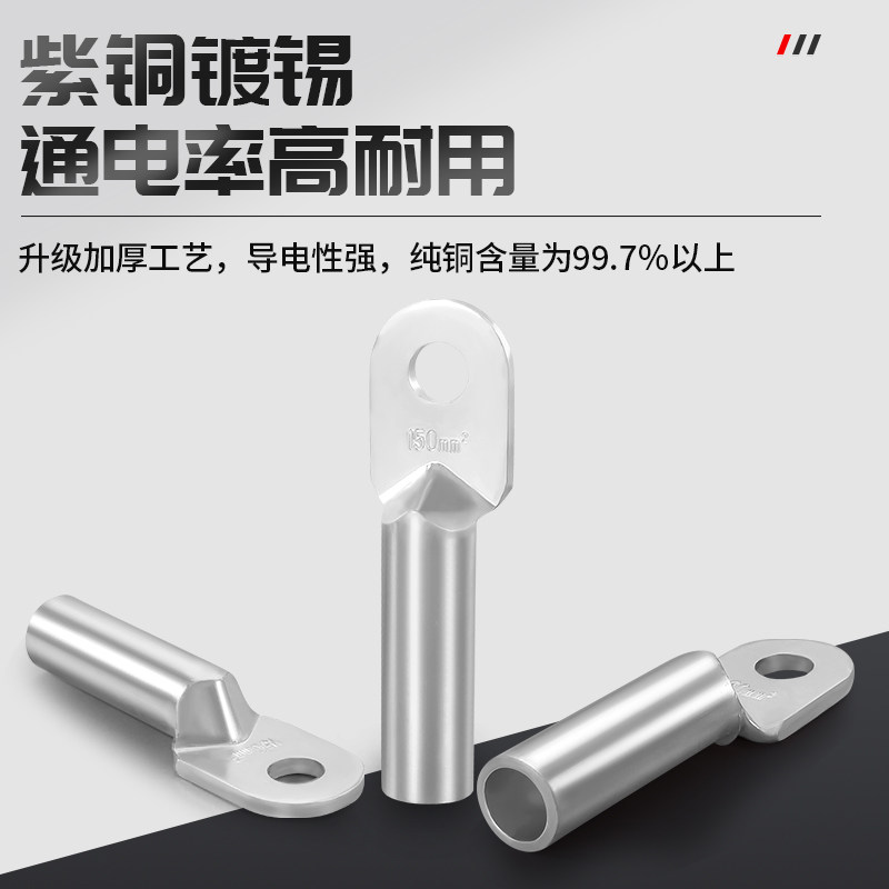 您的位置:光电产业平台  >  电器  >  DT国标A级堵油铜鼻子镀锡加厚纯铜线耳接线端子大电流电缆接线头