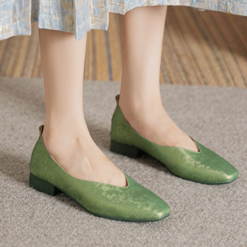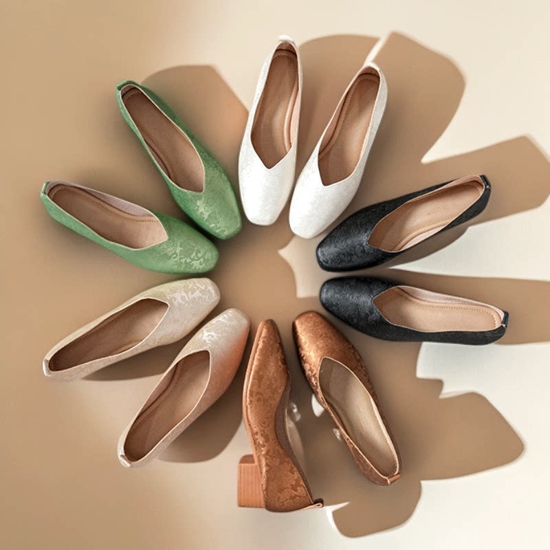 2.5/3.5/5厘米羊皮新中式国风古韵方头印花低跟浅口软底单鞋女款 - 大汐汐的批发店铺