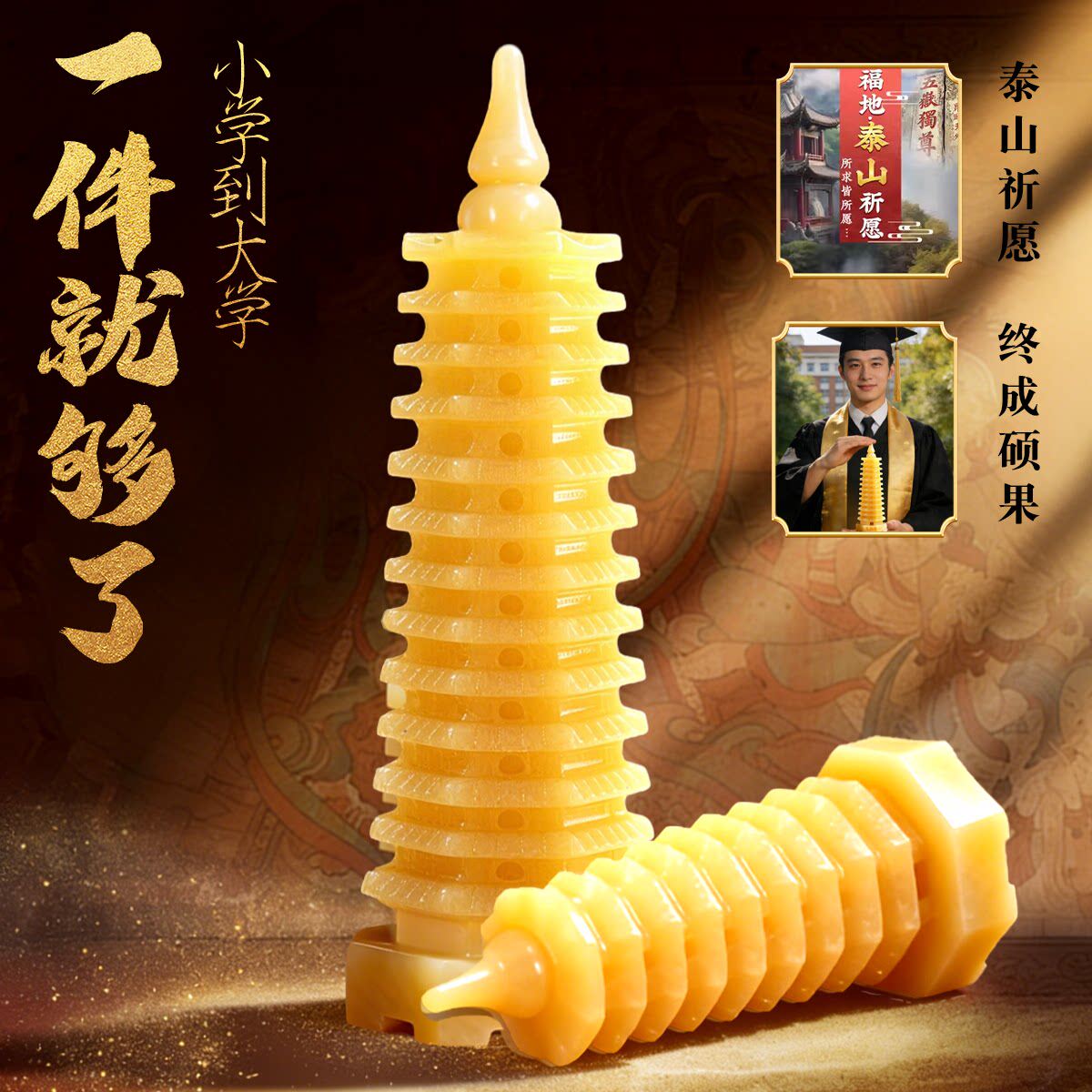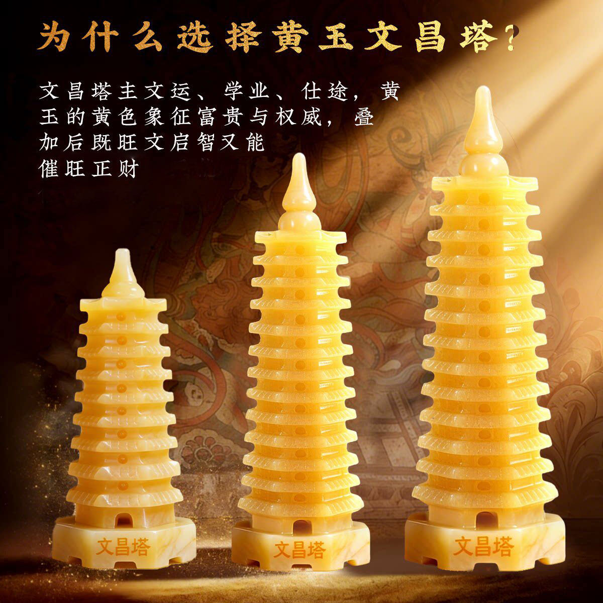 天然黄玉石文昌塔学生用的十三层九层开过13层9层旗舰店书桌摆件 - 泰山祈福阁