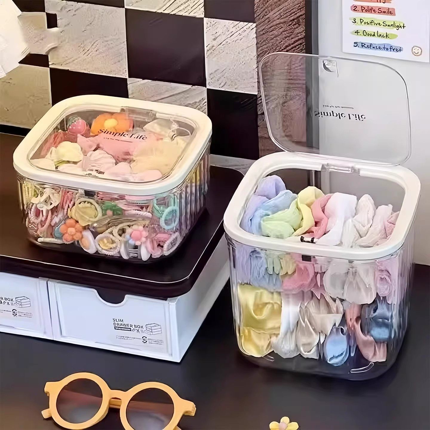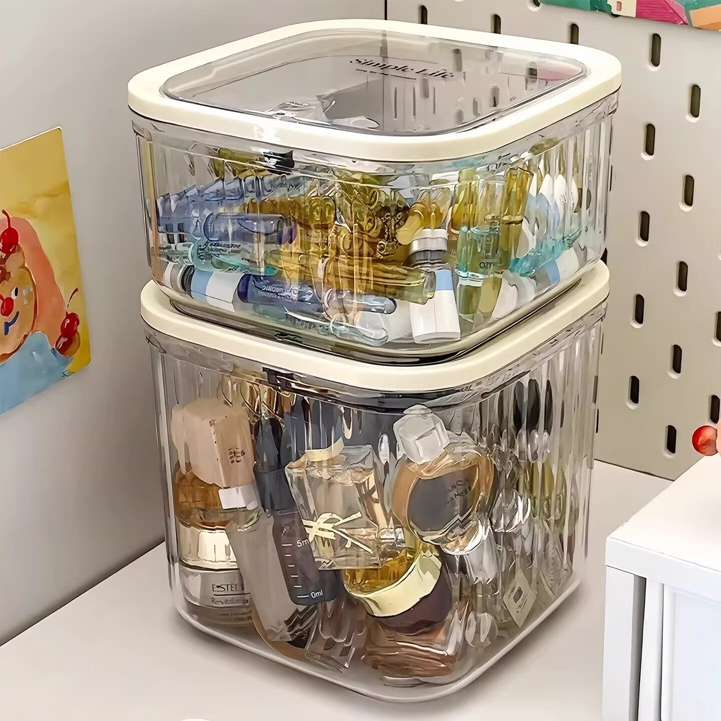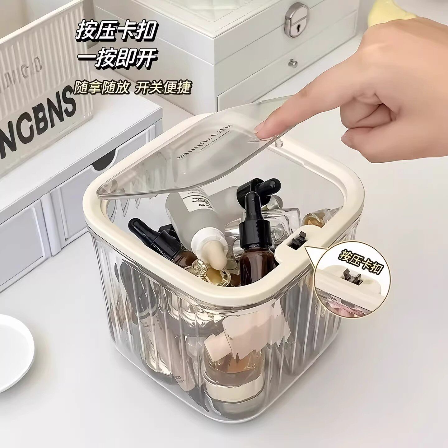 粉扑收纳盒桌面化妆品亚克力次抛口红护肤迷你翻盖杂物透明置物架 - 物美家居百货超市