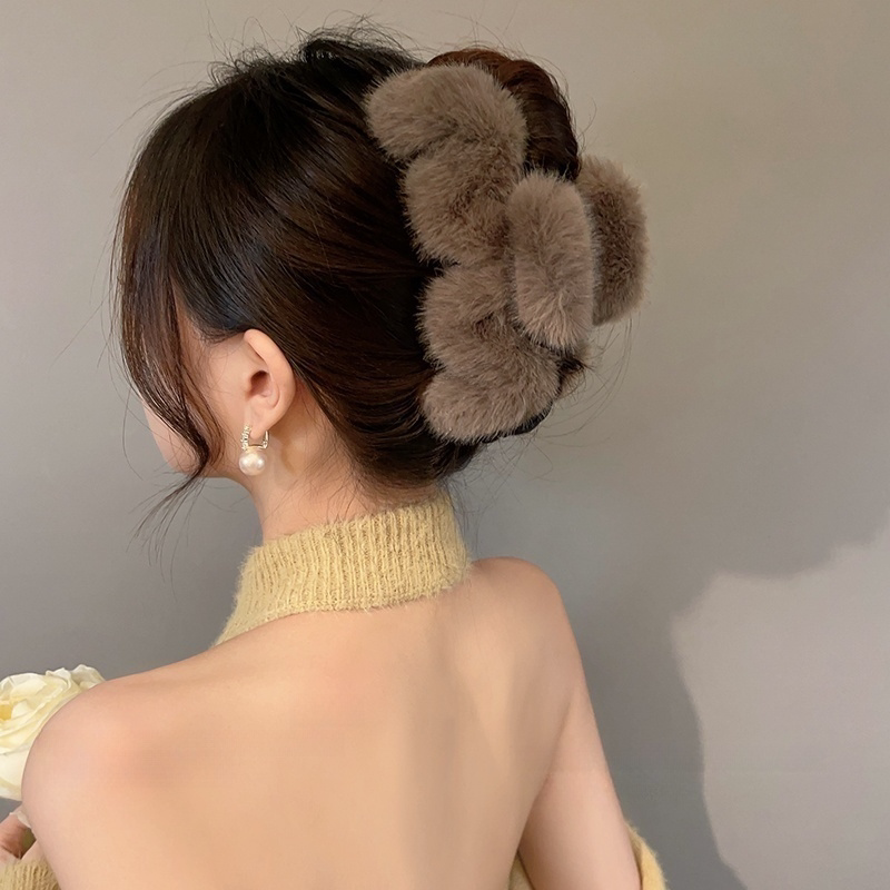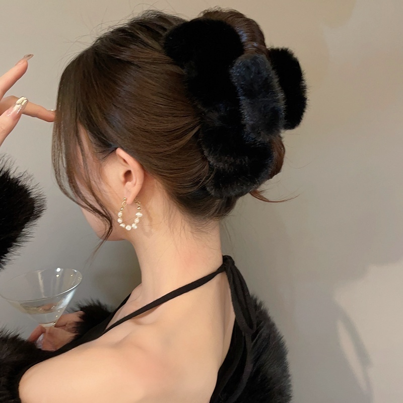 毛绒发夹!高级感~大号2026新款秋冬发量多鲨鱼夹后脑勺毛毛抓夹 - 邦伯冠旗舰店