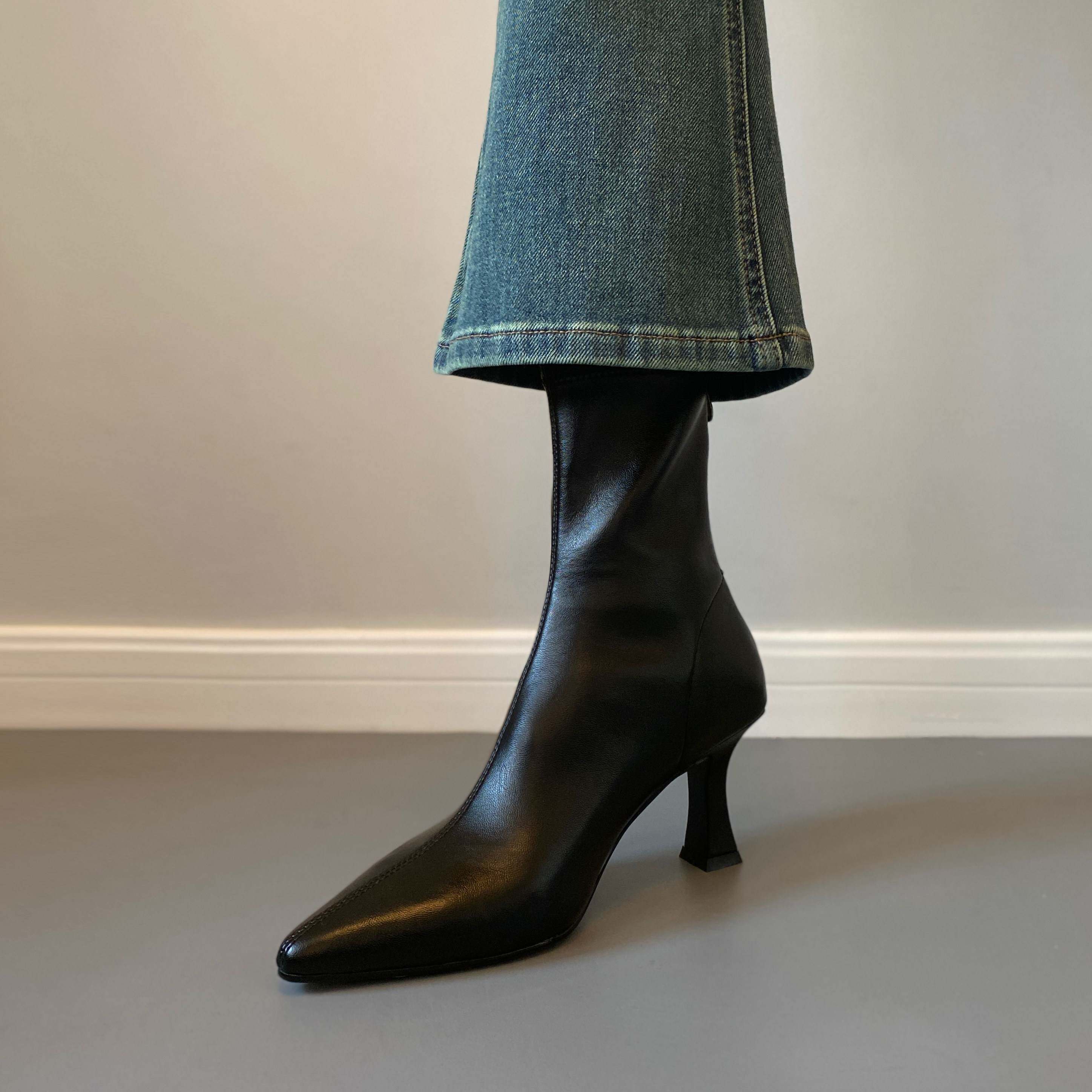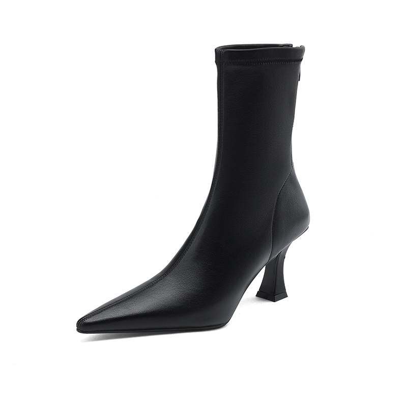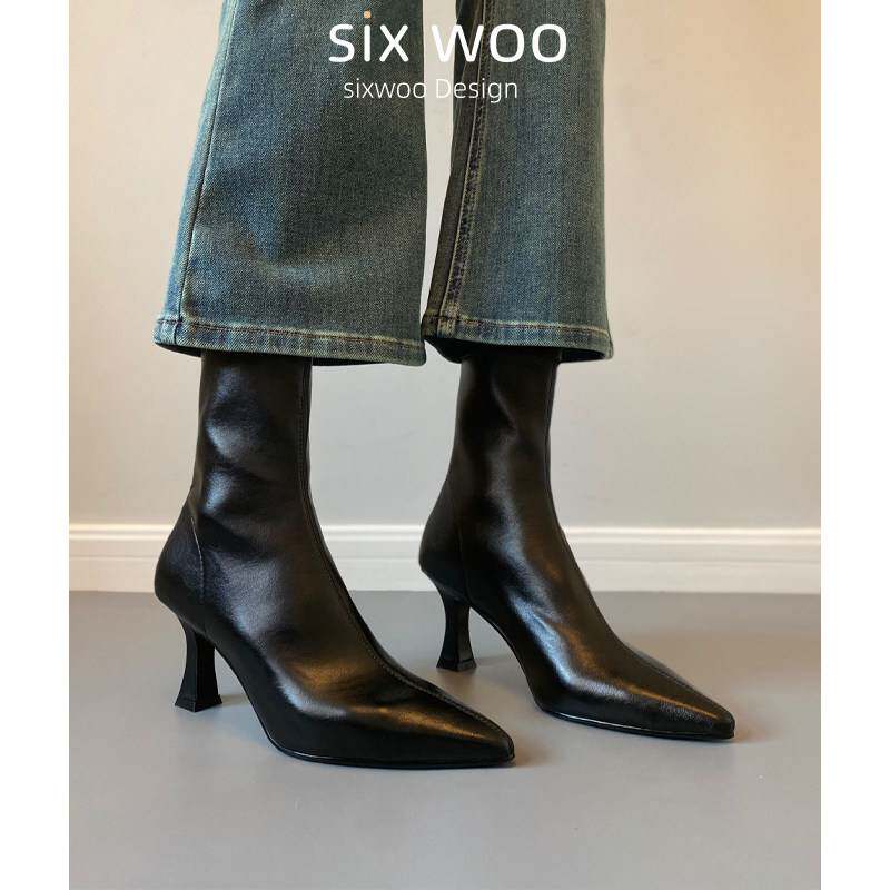 SIXWOO 韩系尖头细跟靴子高跟弹力靴气质百搭黑色瘦瘦靴秋冬女靴 - 天天便宜特卖场