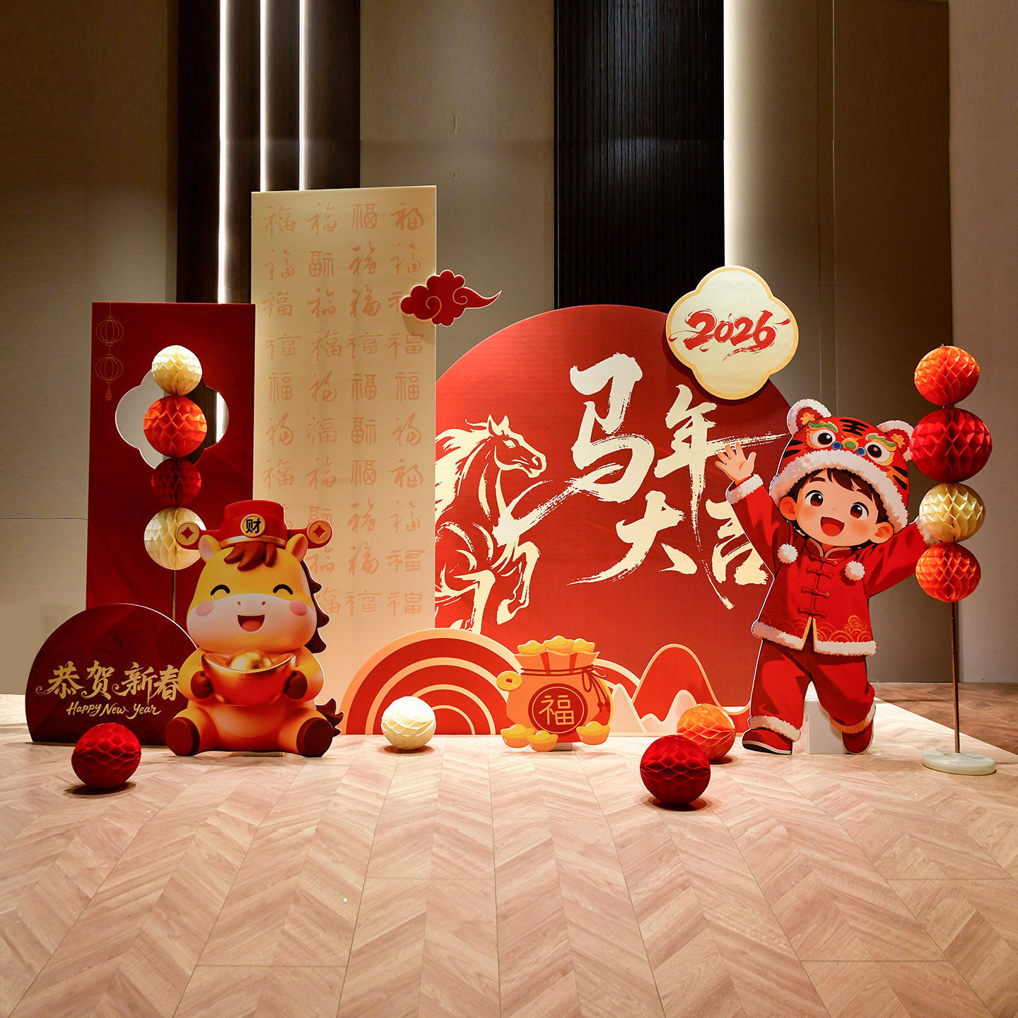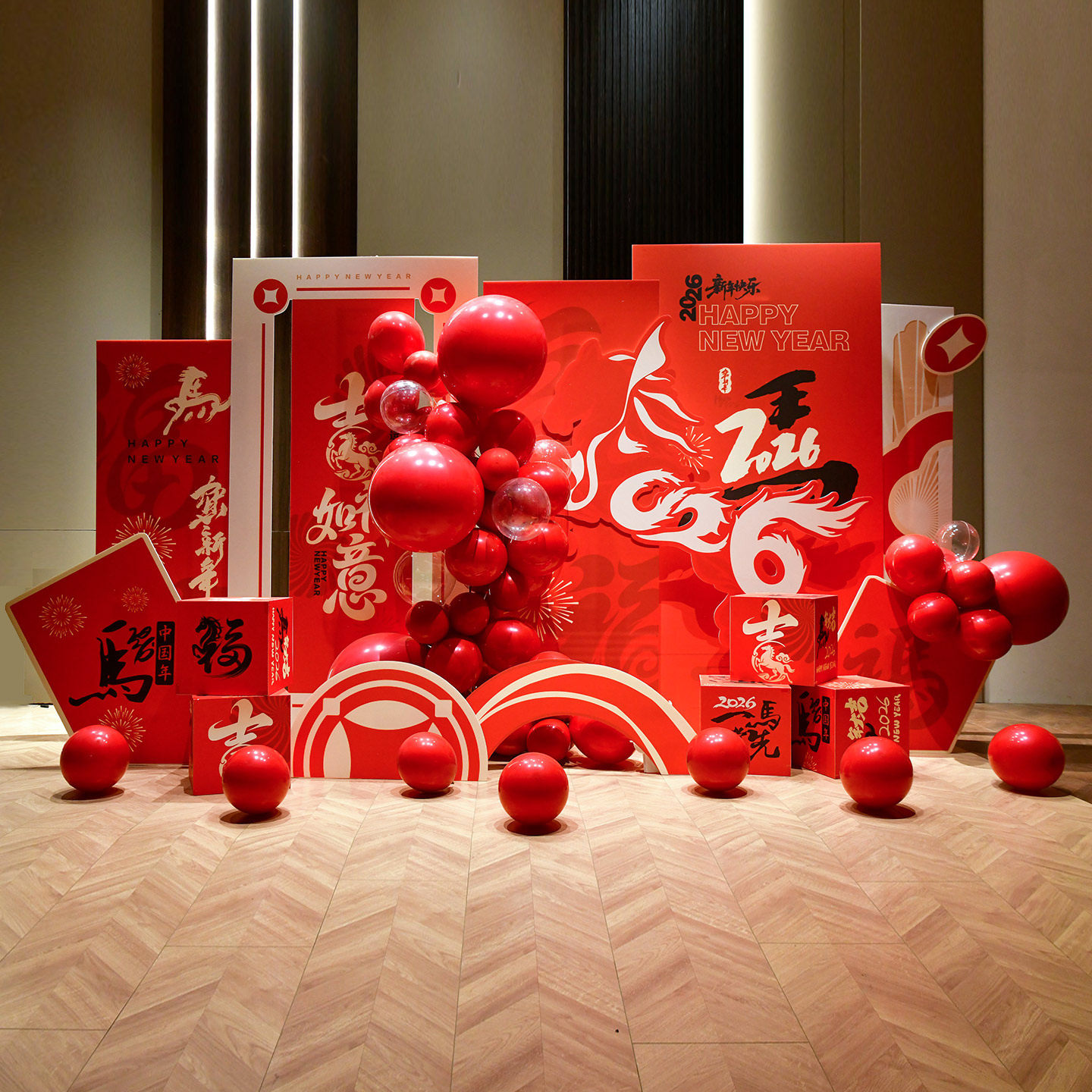 马新年元旦氛围场景布置装饰2026开门红新年展板年会气球kt板背景 - 尤派趣