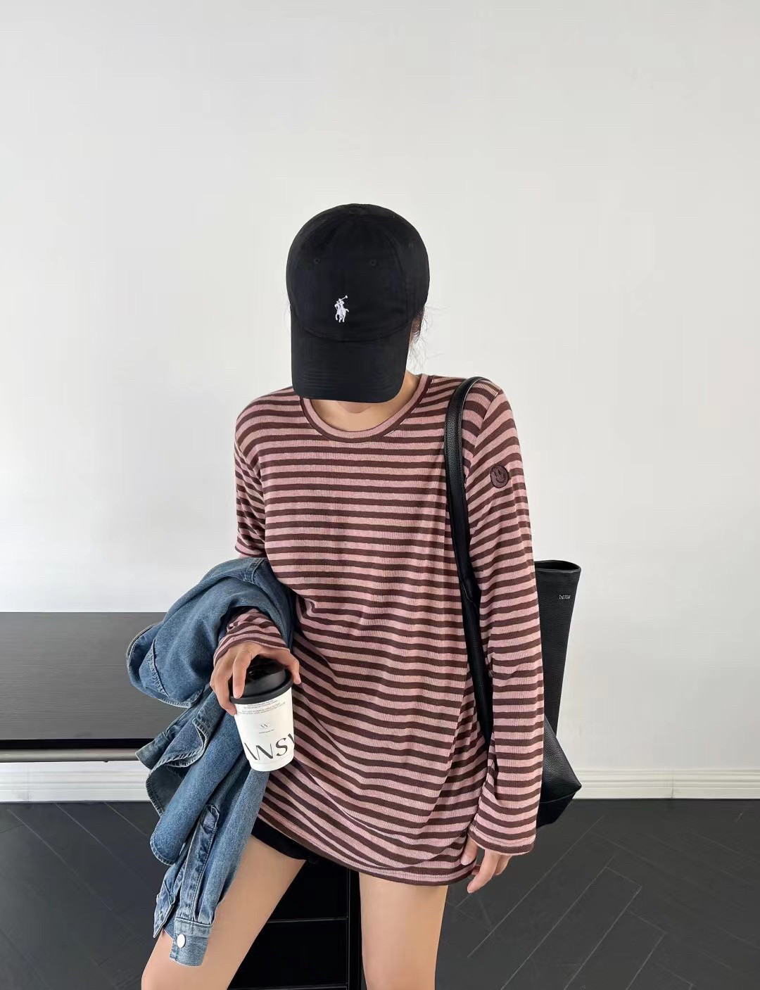 2024春季beyourself新款韩版笑脸横条纹港味设计感T恤女学生上衣 - 汐禾里
