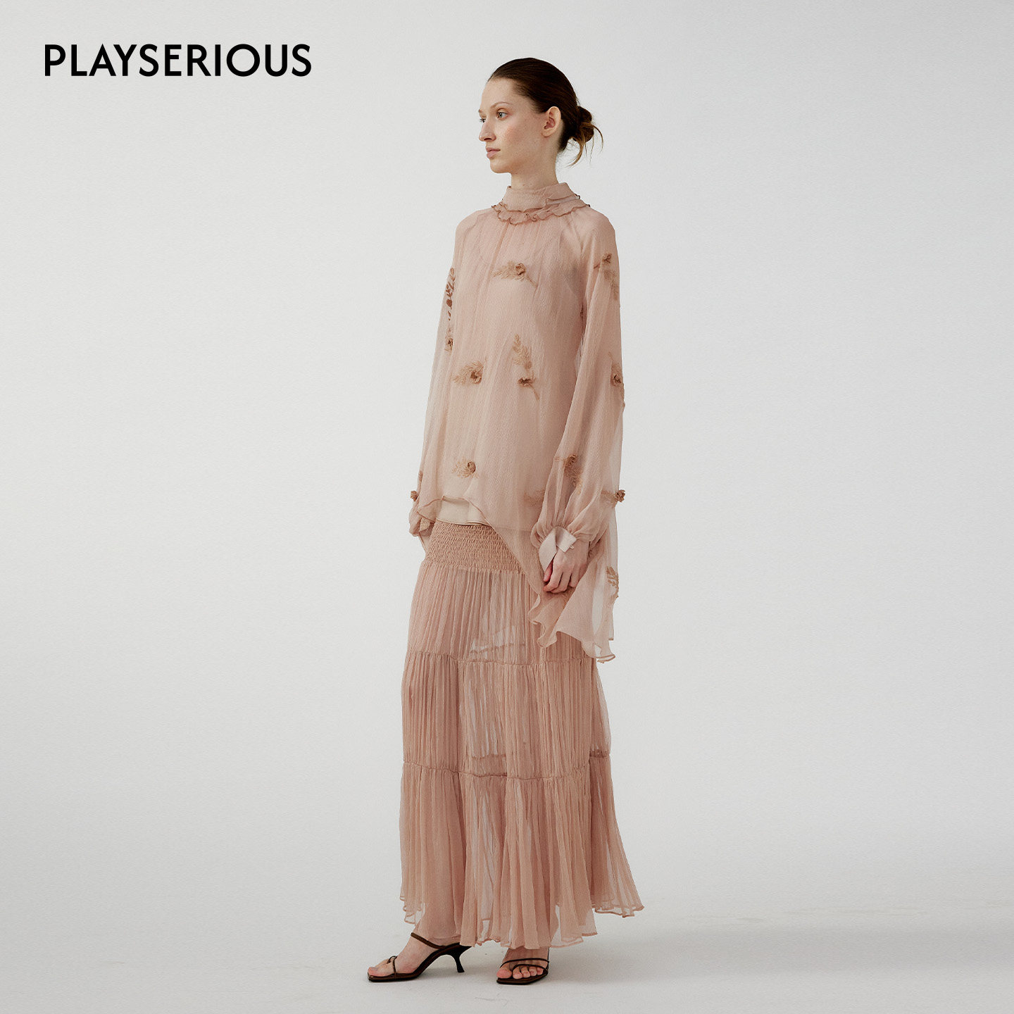 NONETONE 2026春夏新款肌理立体绣花飘带上衣女桑蚕丝宽松上衣 - PlaySERIOUS旗舰店