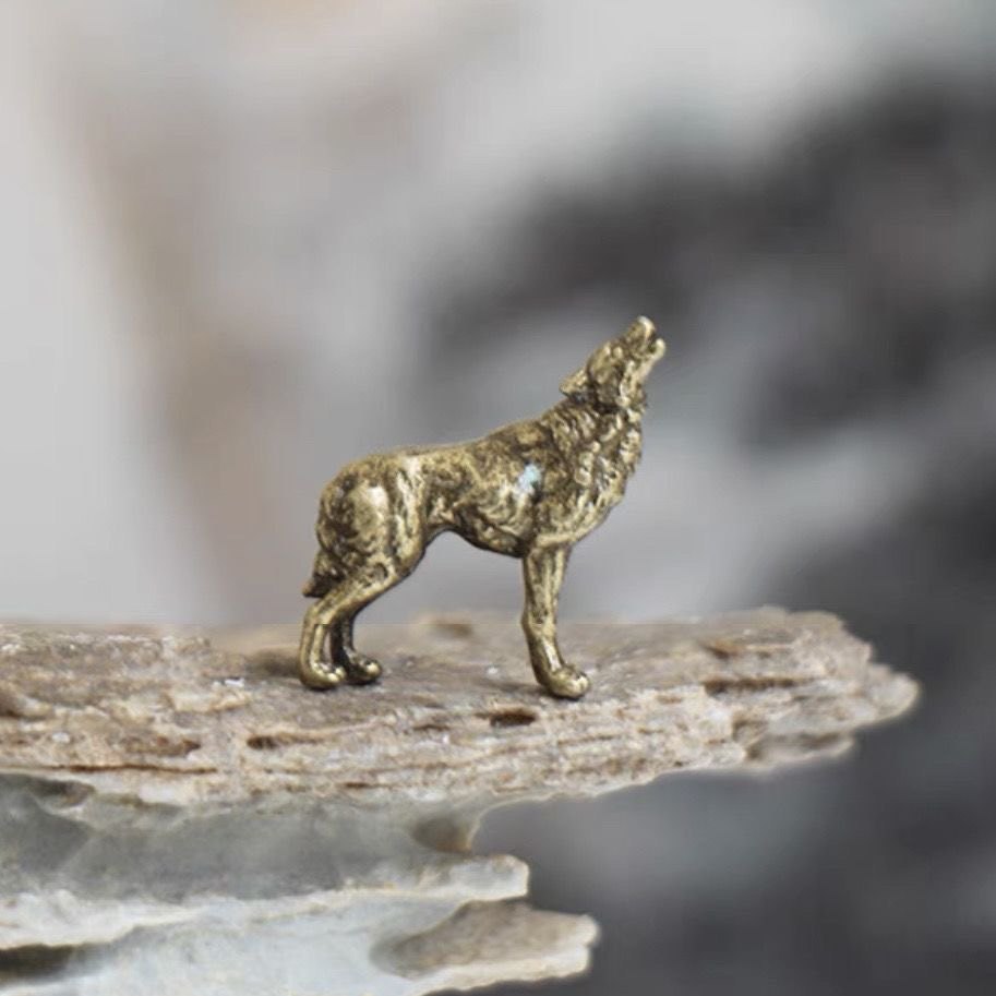 禅意狼仿真小动物铜器迷你微型摆件盆景奇石造景沙盘微景观枯山水 - 凡妙居