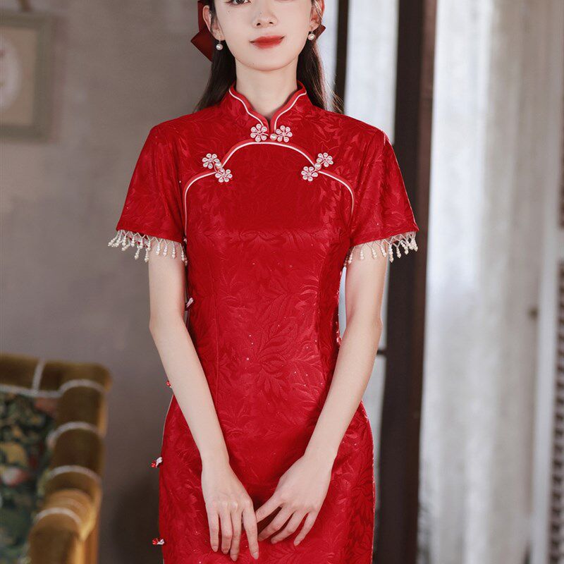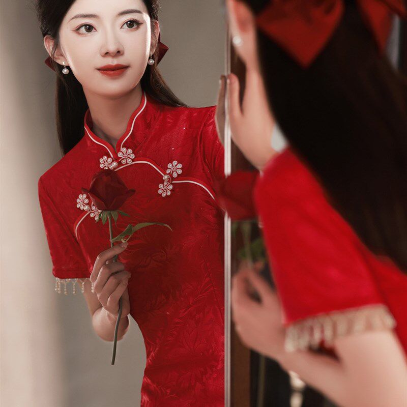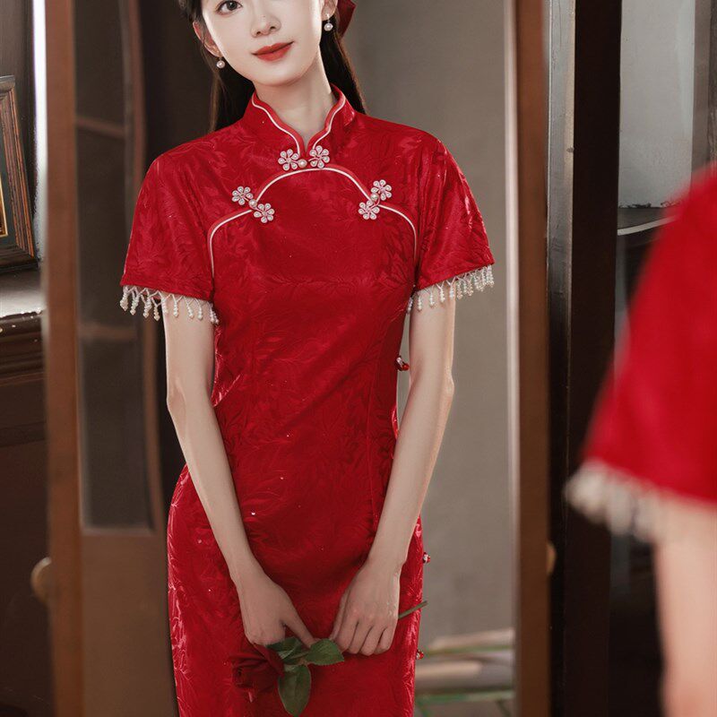 速发年新款红色新中式轻娘旗袍小个子级婚敬酒服少气质出阁宴高订 - 生源日用品铺