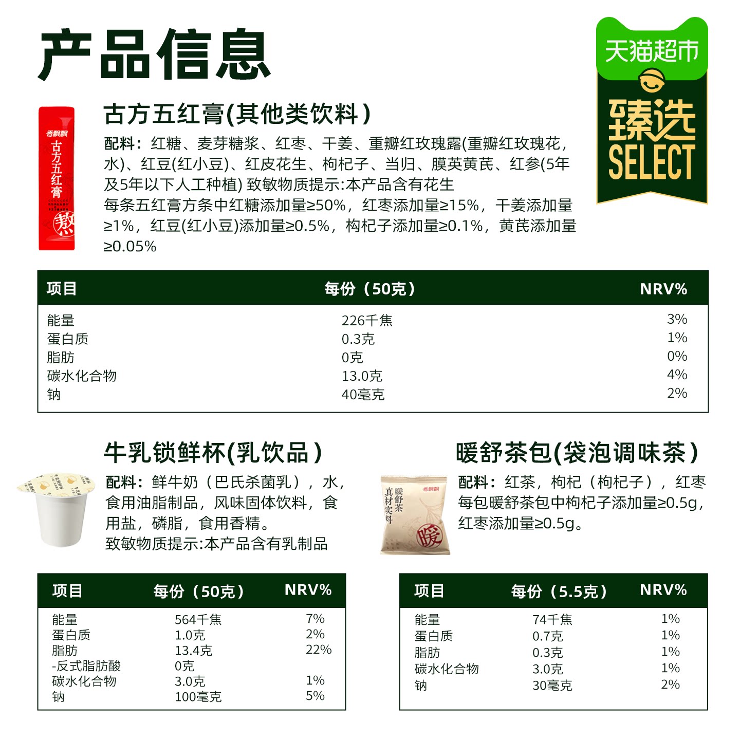 臻选香飘飘古方五红暖乳茶1箱10杯装冲泡冲调热奶茶饮品礼盒 - 天猫超市