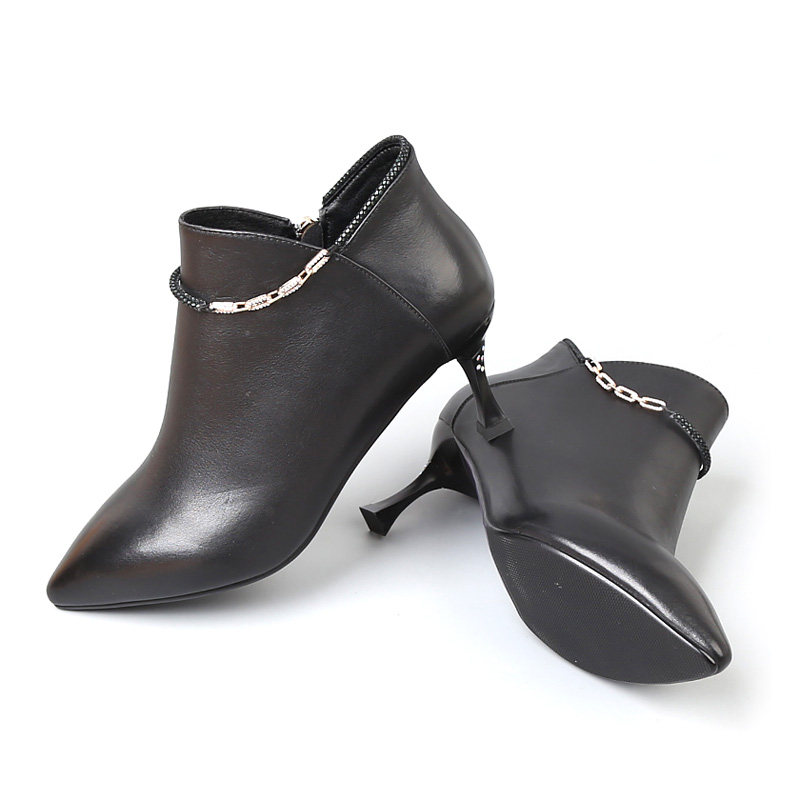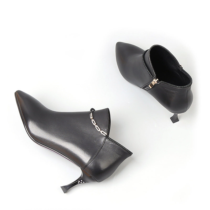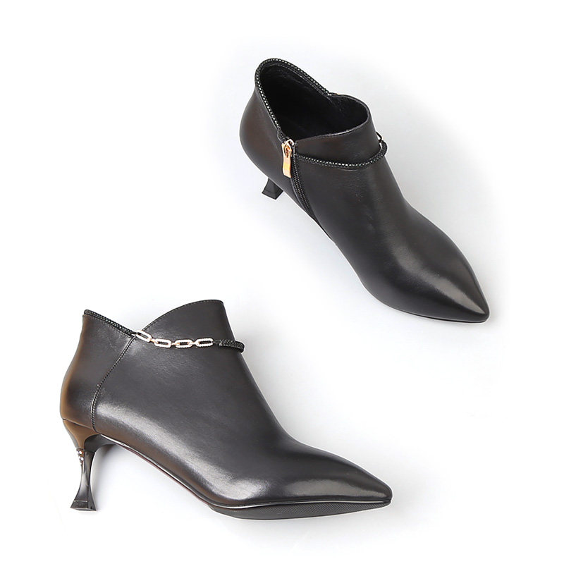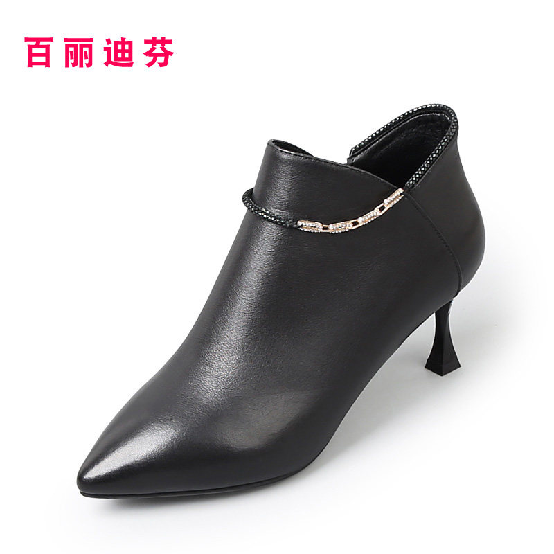 真皮靴子特大码女鞋41一43春秋新款短靴高跟鞋细跟尖头女靴单鞋42 - 百丽迪芬企业店