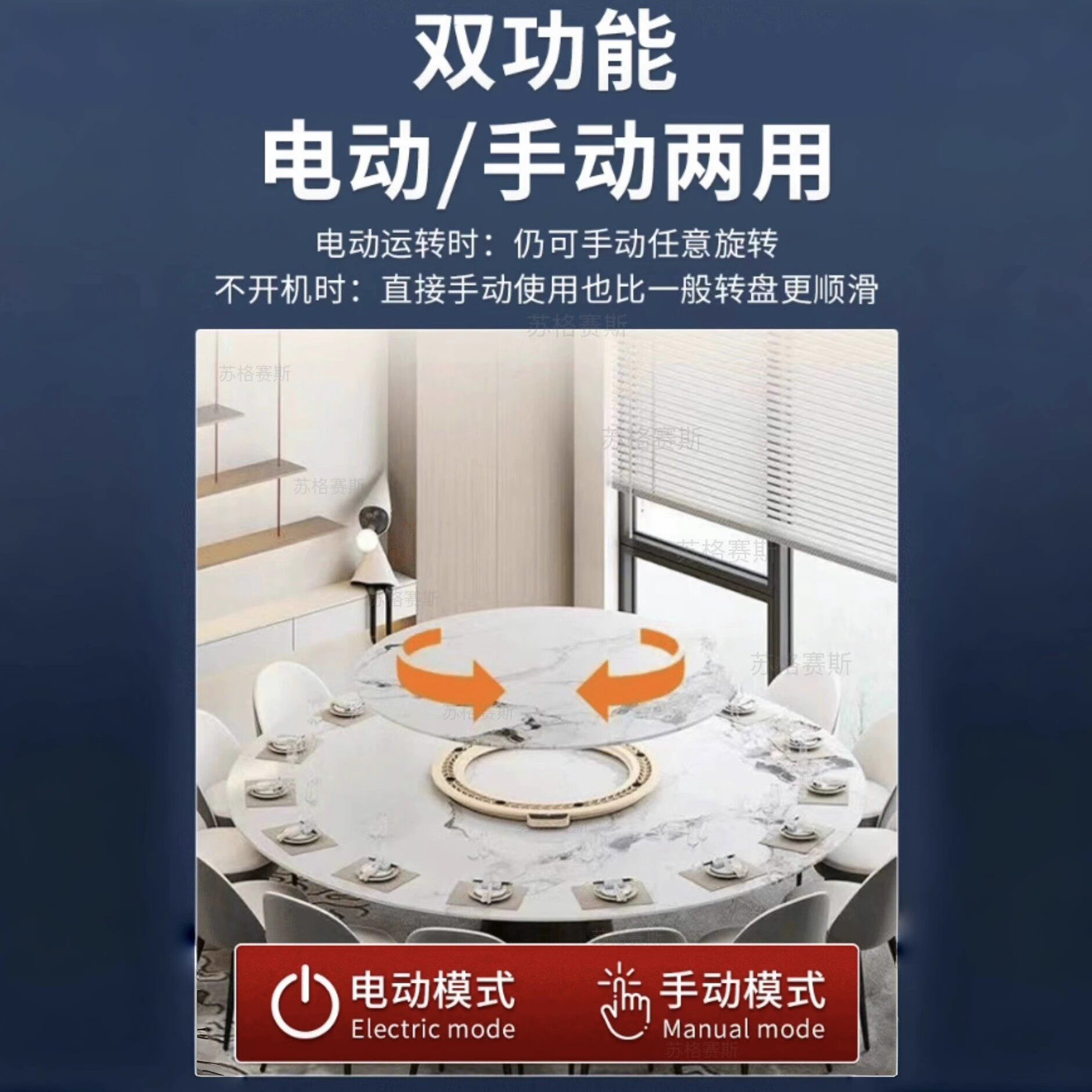 餐桌电动转盘器圆桌底座家用酒店自动转盘实木岩板钢化玻璃转芯 - 苏格赛斯转盘工厂