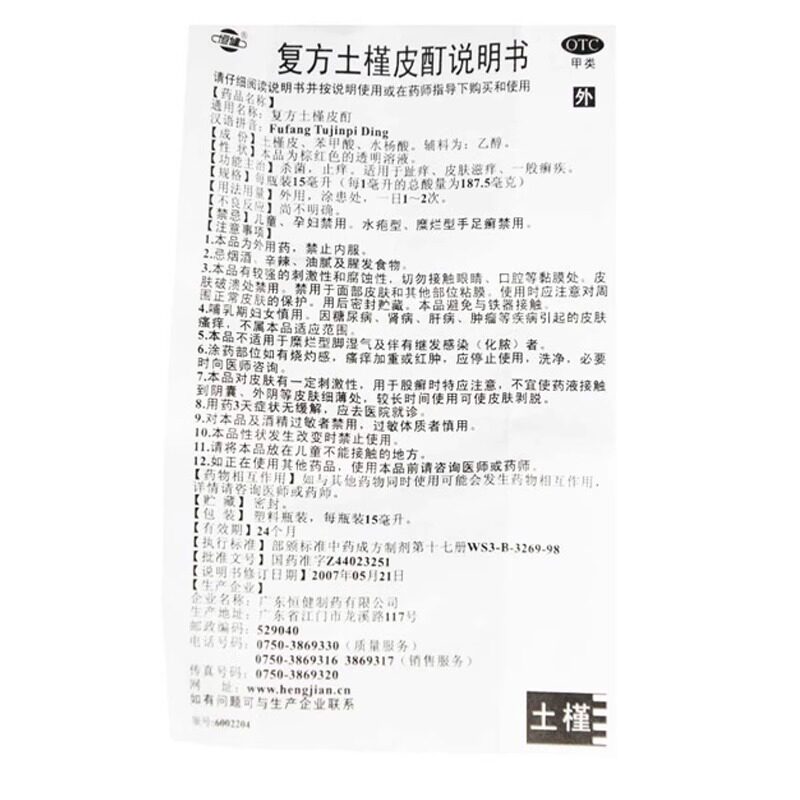 恒健复方土槿皮酊15ml/盒外用杀菌止痒药皮肤滋痒一般癣疾OTC正品 - 忒药医药专营店