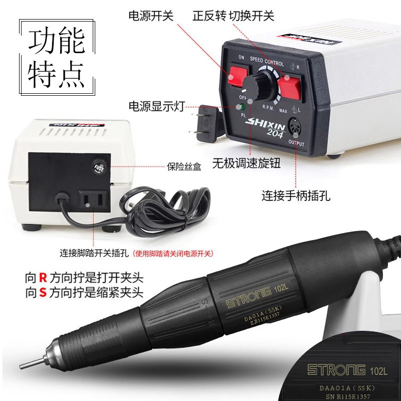 世新204牙机雕刻机小型打磨机玉石抛光玉雕木工核雕刻电动电磨机 - 水木源电动工具