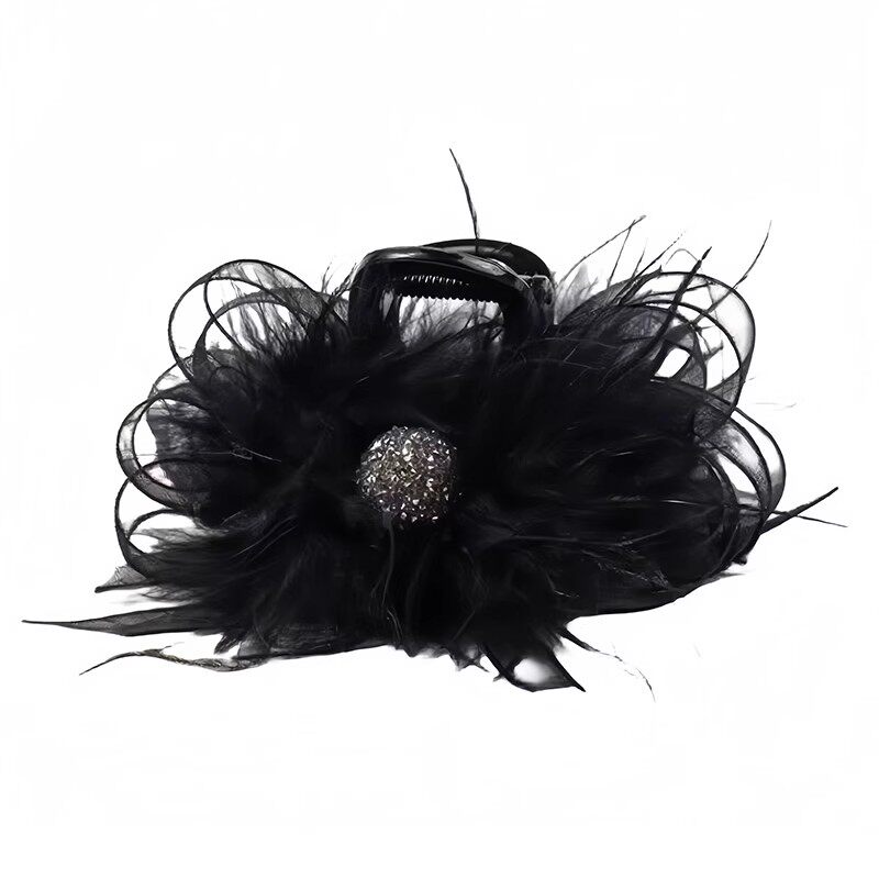 超仙~风欧根纱蝴蝶结羽毛8厘米抓夹气质时尚浪漫毛毛抓夹秋冬新款 - 优选百货商城