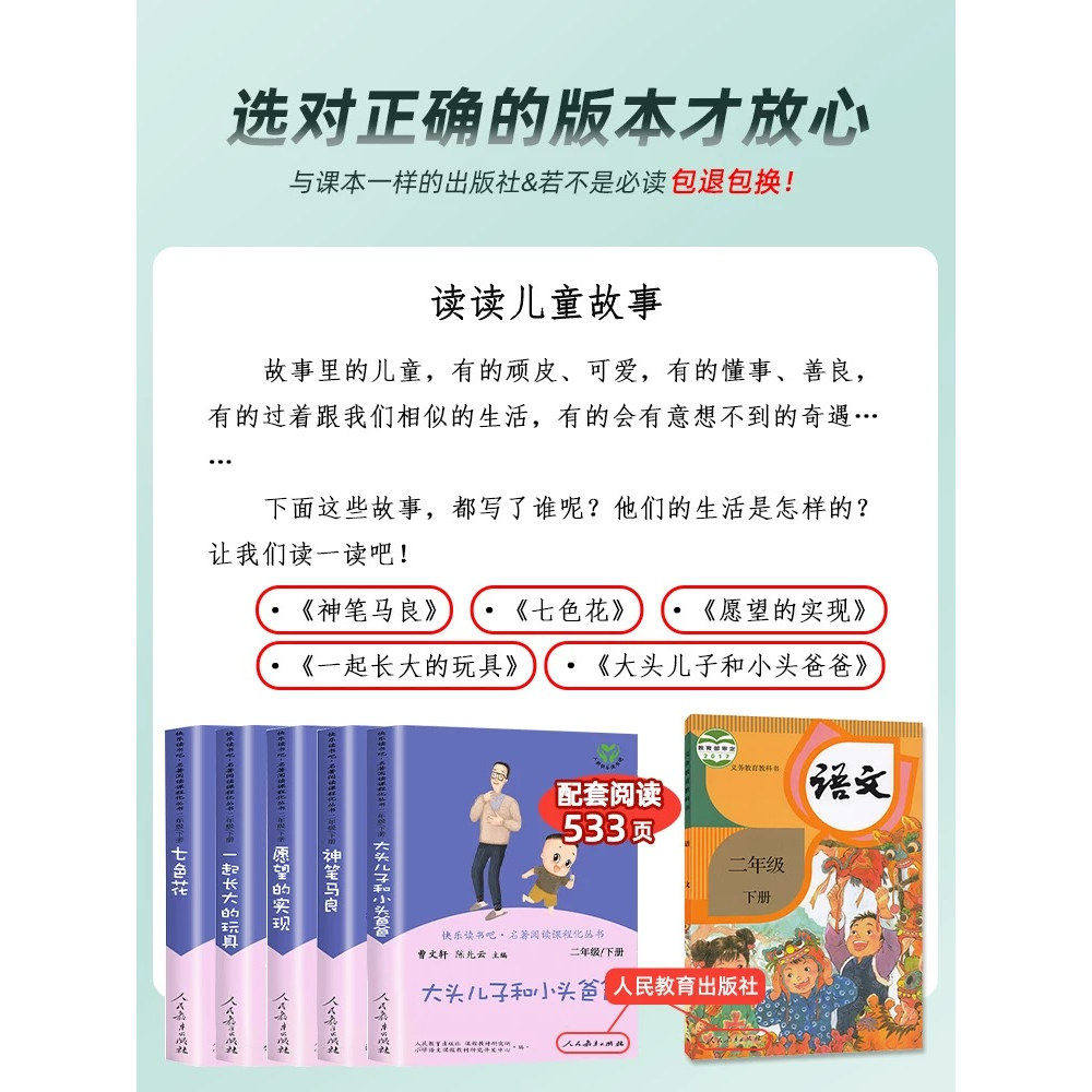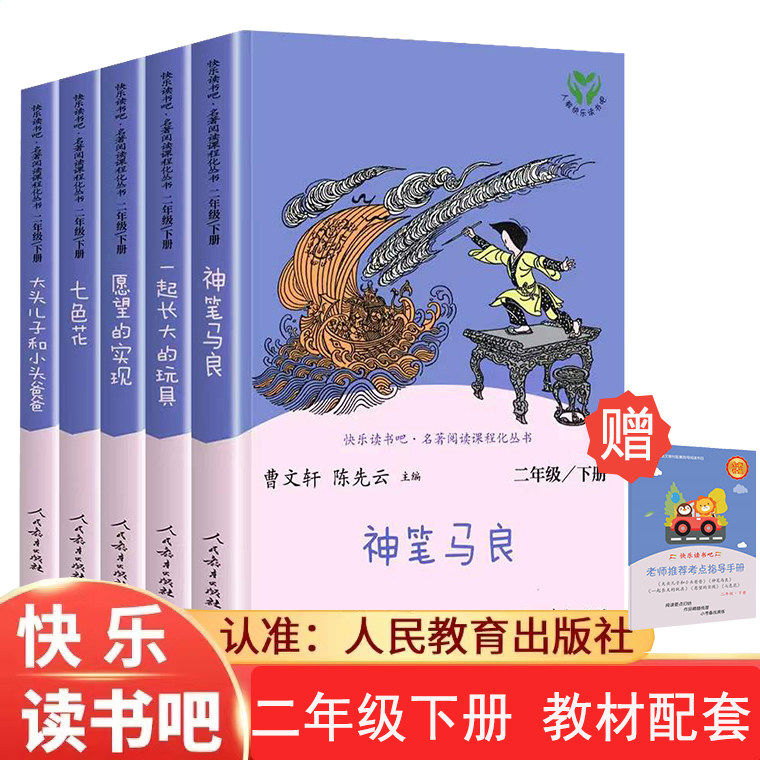 正版快乐读书吧二年级下册人教版必读全套5本神笔马良一起长的玩具七色花愿望的实现大头儿子和小头爸爸人教版小学课外完整无删减 - 风饮沙图书旗舰店