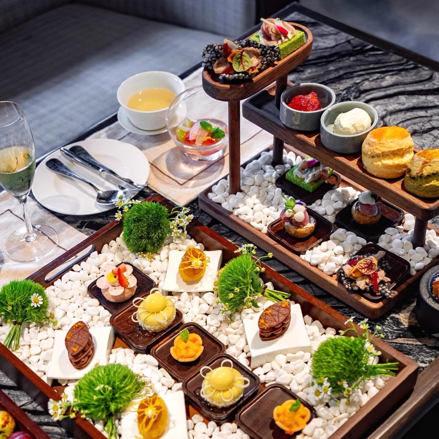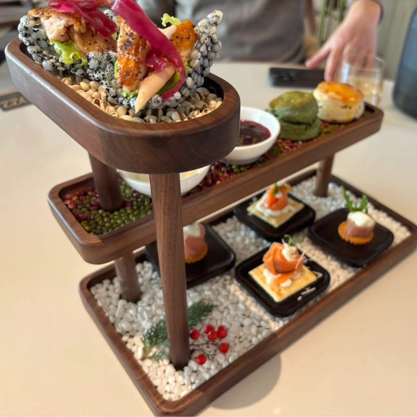 餐厅高档餐具创意实木托盘三层摆放架下午茶展示架复古中式点心架 - 无忧创意器皿