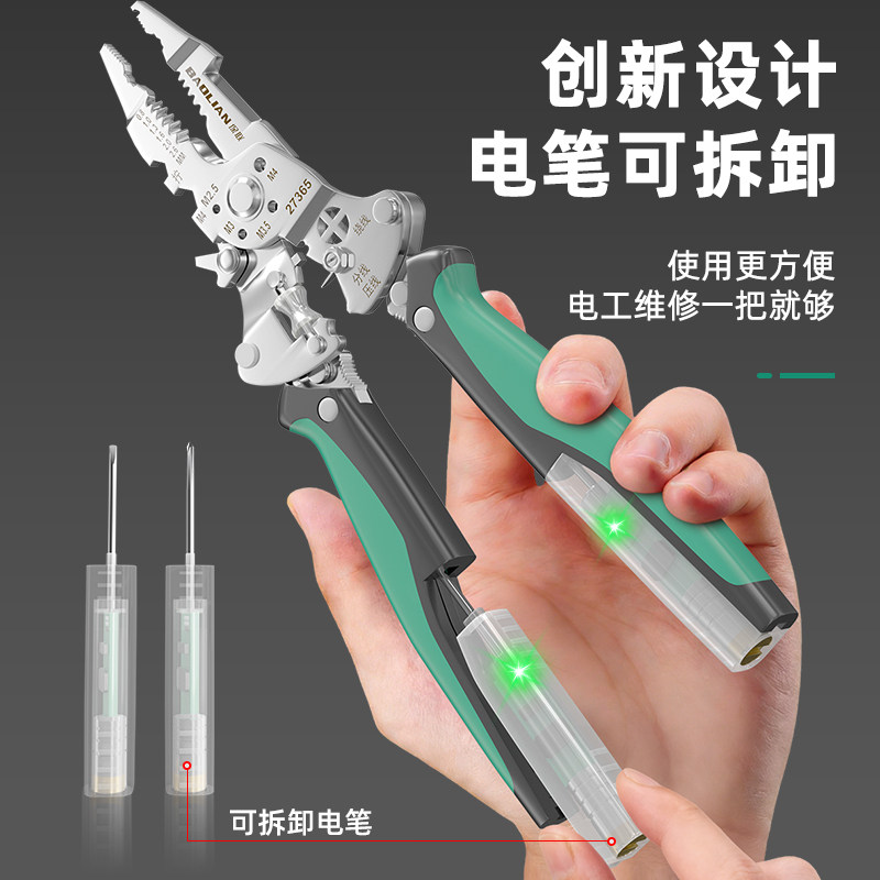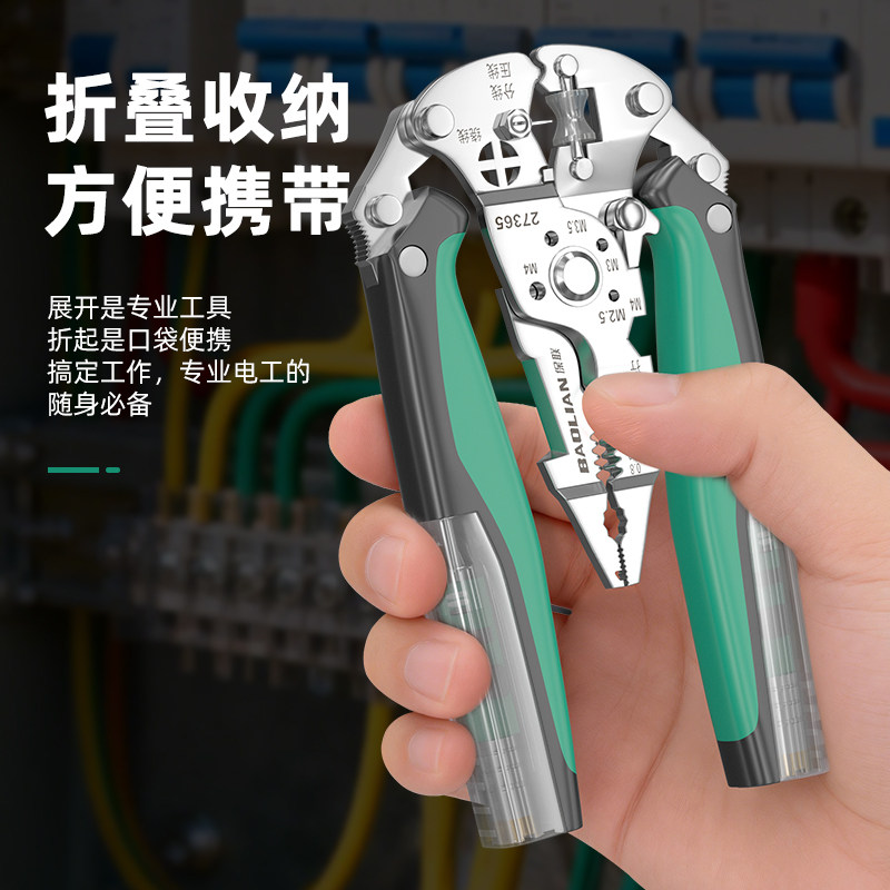测电剥线钳新款折叠多功能工业级拔线滑轮分线高强度电工专用钳子 - 保联旗舰店