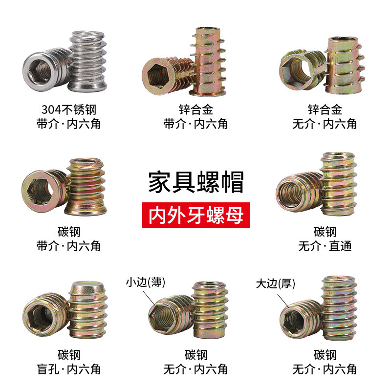 沉头内六角预埋螺母铁内外牙彩锌家具锌合金平头梯形有介连接件 - 佰瑞特工厂官方店