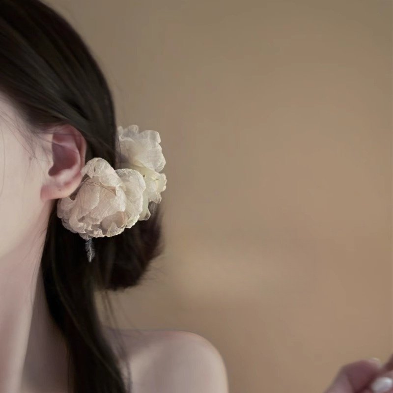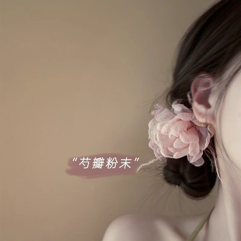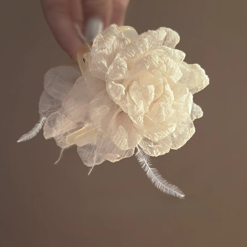 芍药粉末 氛围感法式复古雪纺花朵羽毛抓夹 小众后脑勺盘发鲨鱼夹 - 璀璨艺阁