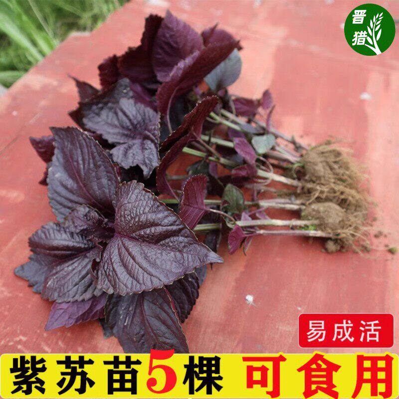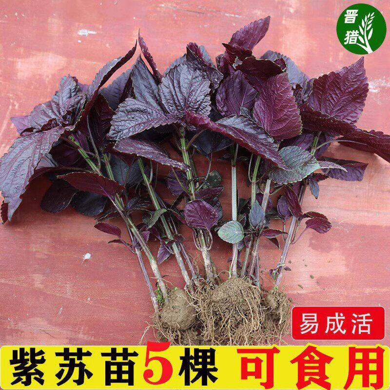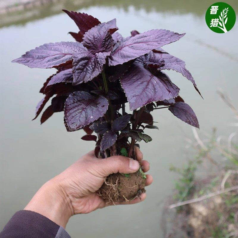 双面全紫紫苏苗湖南老品种大叶紫苏全紫带土阳台栽种去腥紫苏叶苗 - 花无痕旗舰店