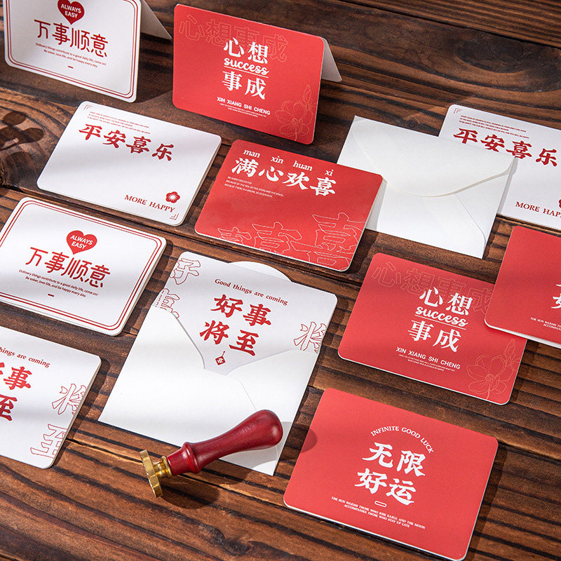 励志文字立体贺卡带信封明信片小卡片手写心愿卡折叠高级感空白祝福留言卡花店对折开学白色硬纸片圣诞节新年 - 诗言致青旗专卖店