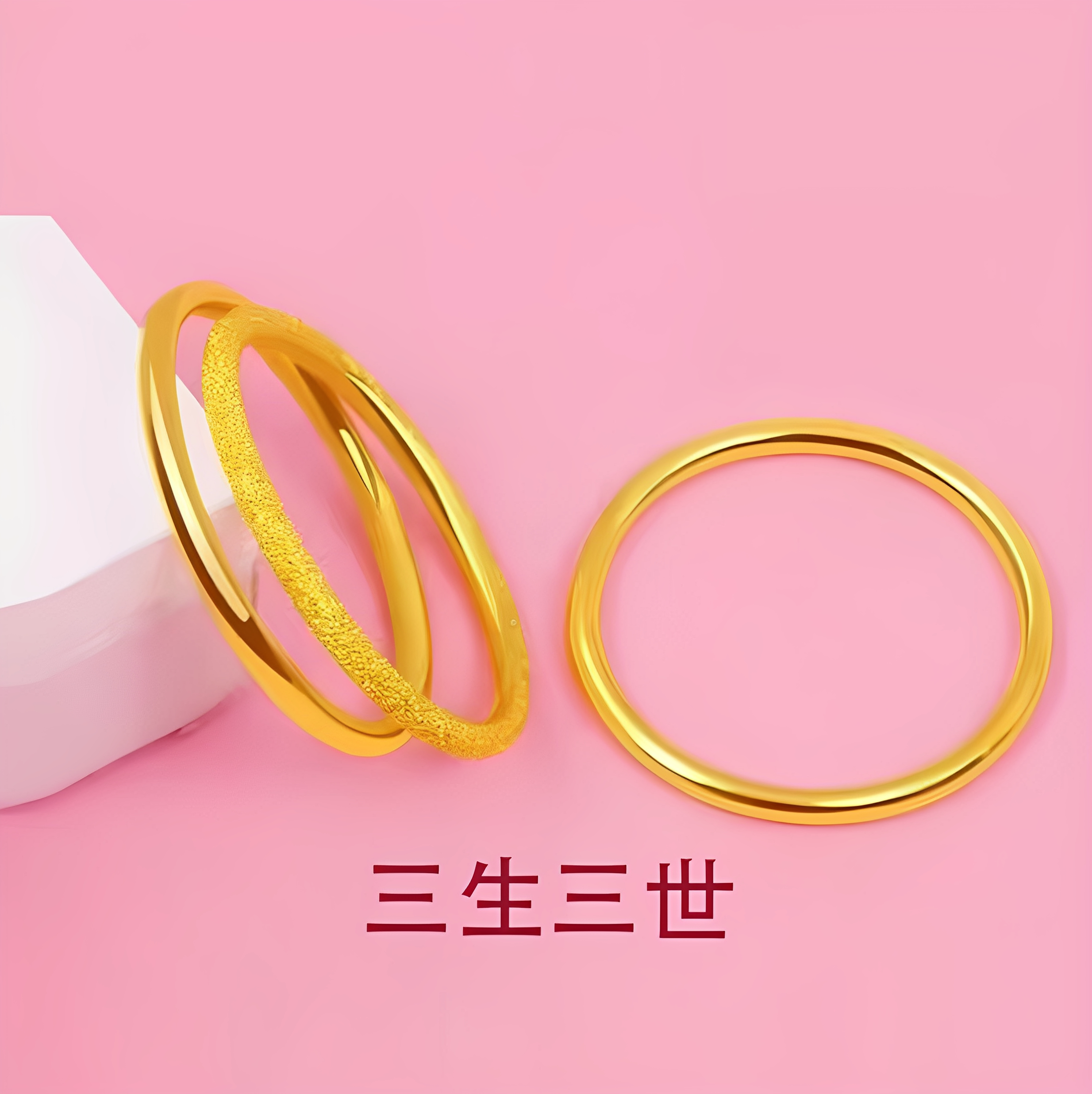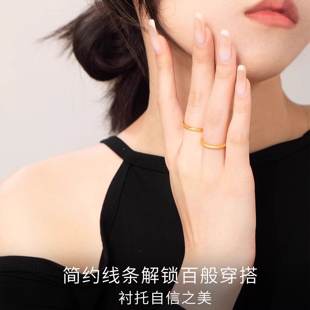 深圳水贝金包银三生三生素圈戒指实心指环男女情侣对戒情人节礼物 - 深圳水贝黄金专柜店