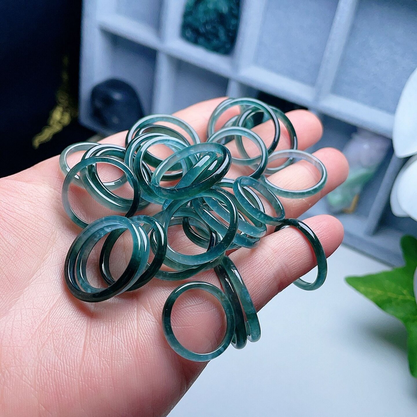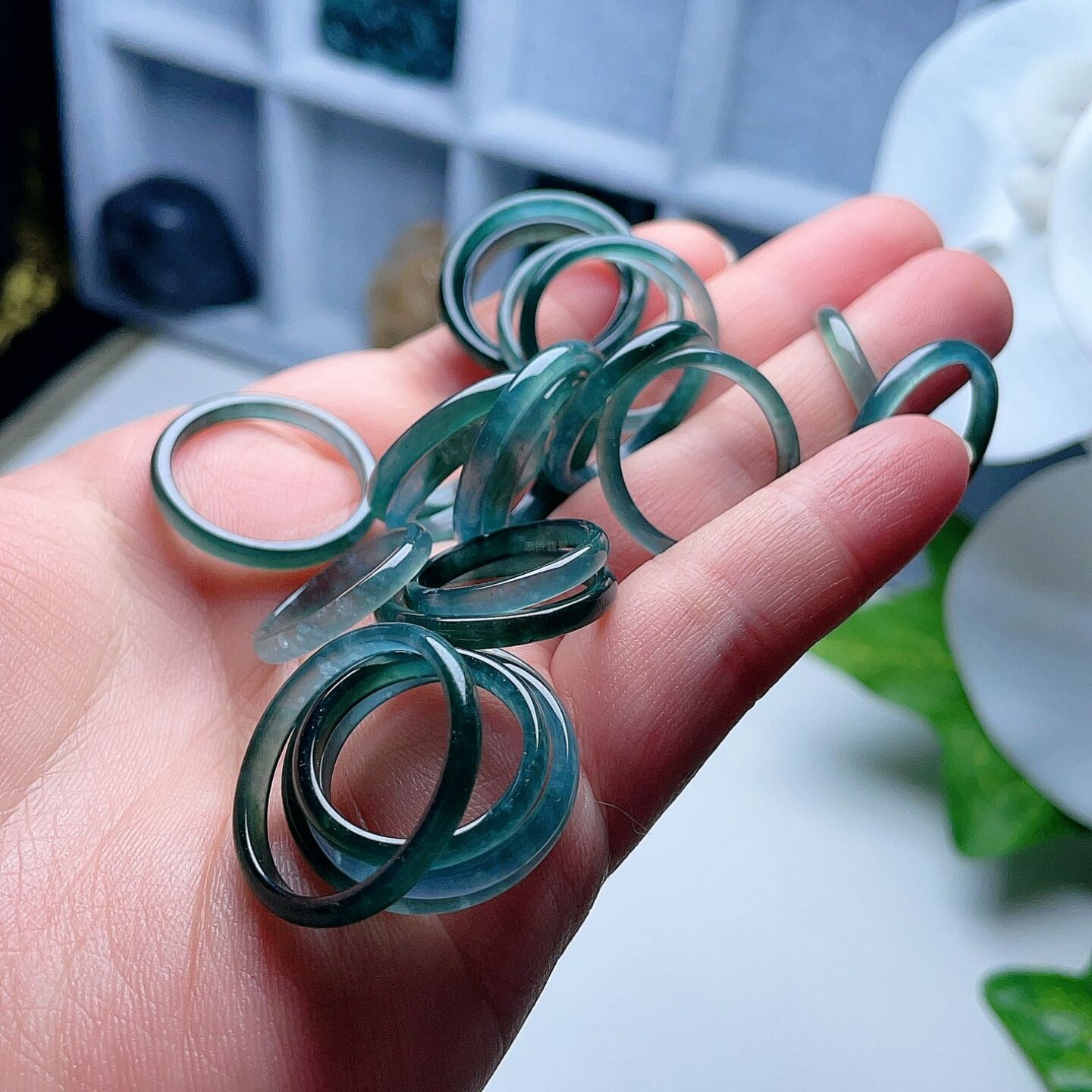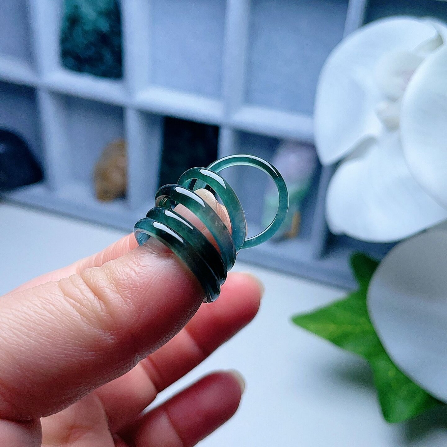 A货翡翠戒指晴水蓝绿双彩飘花天然老坑玉指环半山半水意境儒雅 - 四会忠贤珠宝店